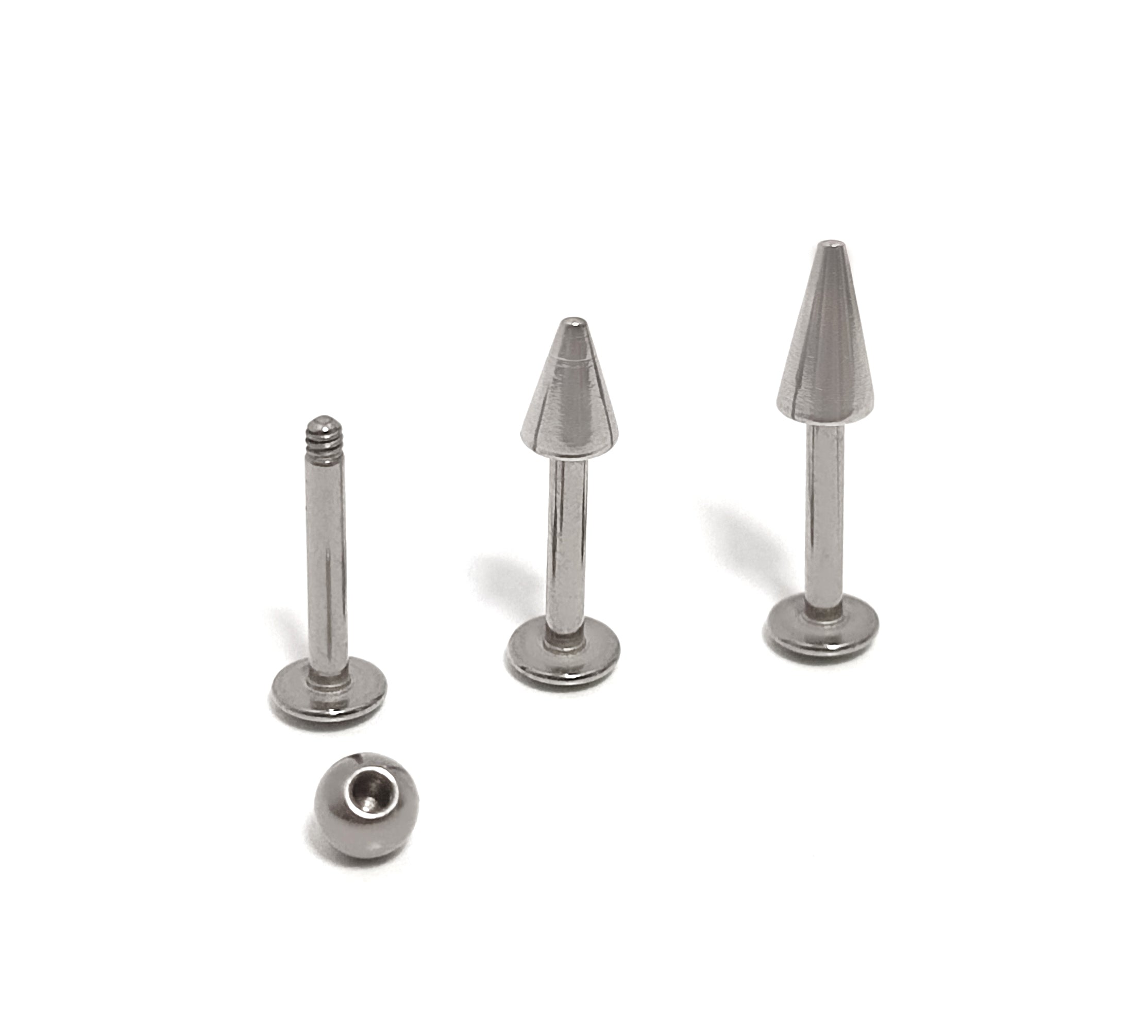 Titanium Labret Stud Piercing Ball, Cone, Spike - 3pcs - 16g Lip Piercing Also for Tragus Helix Cartilage Madonna Medusa Side Labret