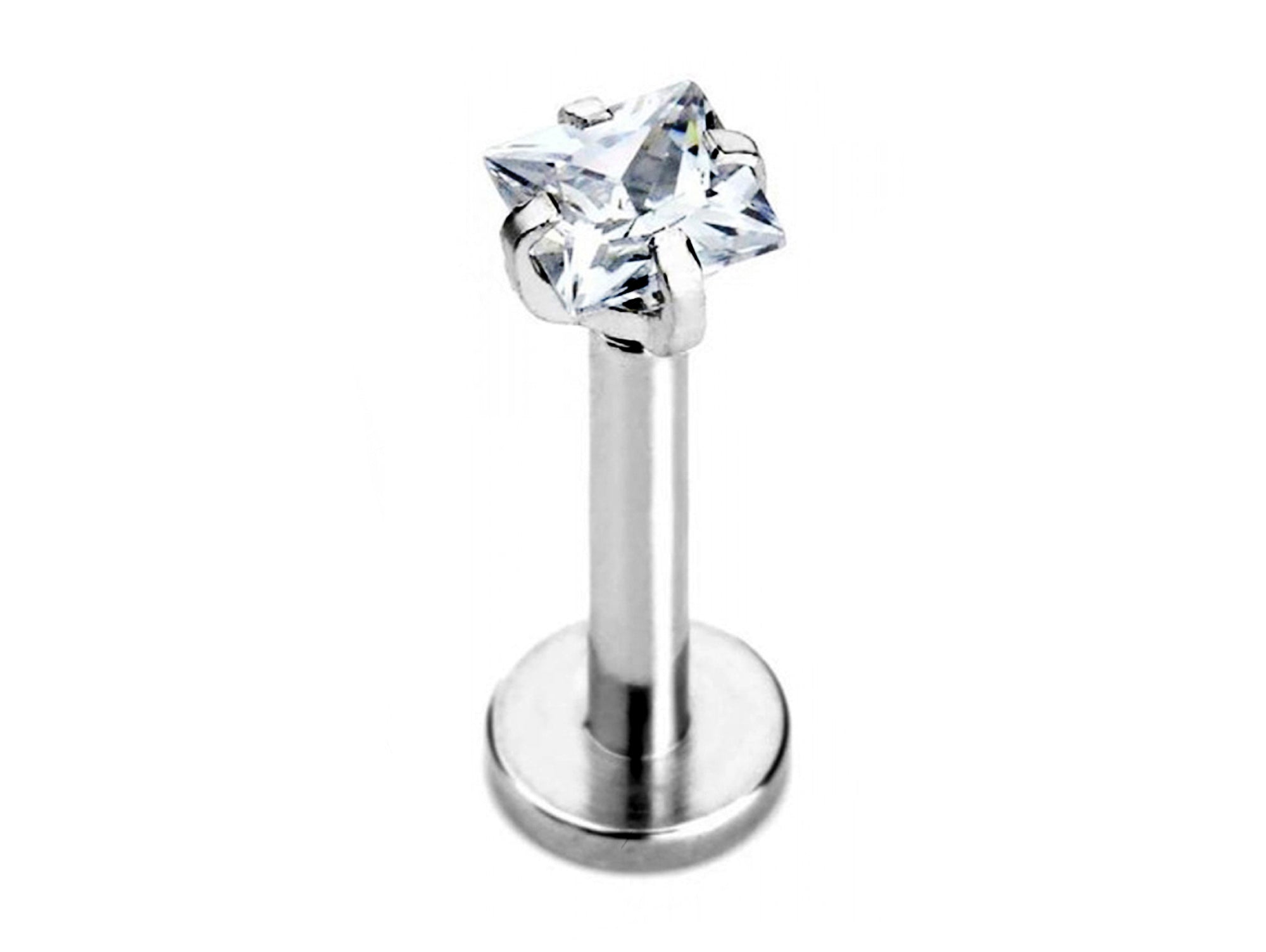Titanium Lip Jewelry, Labret Stud – Internally threaded Square Top Prong Set Crystals– 16g (1.2mm) Labret Piercing Lip, Helix, Tragus.