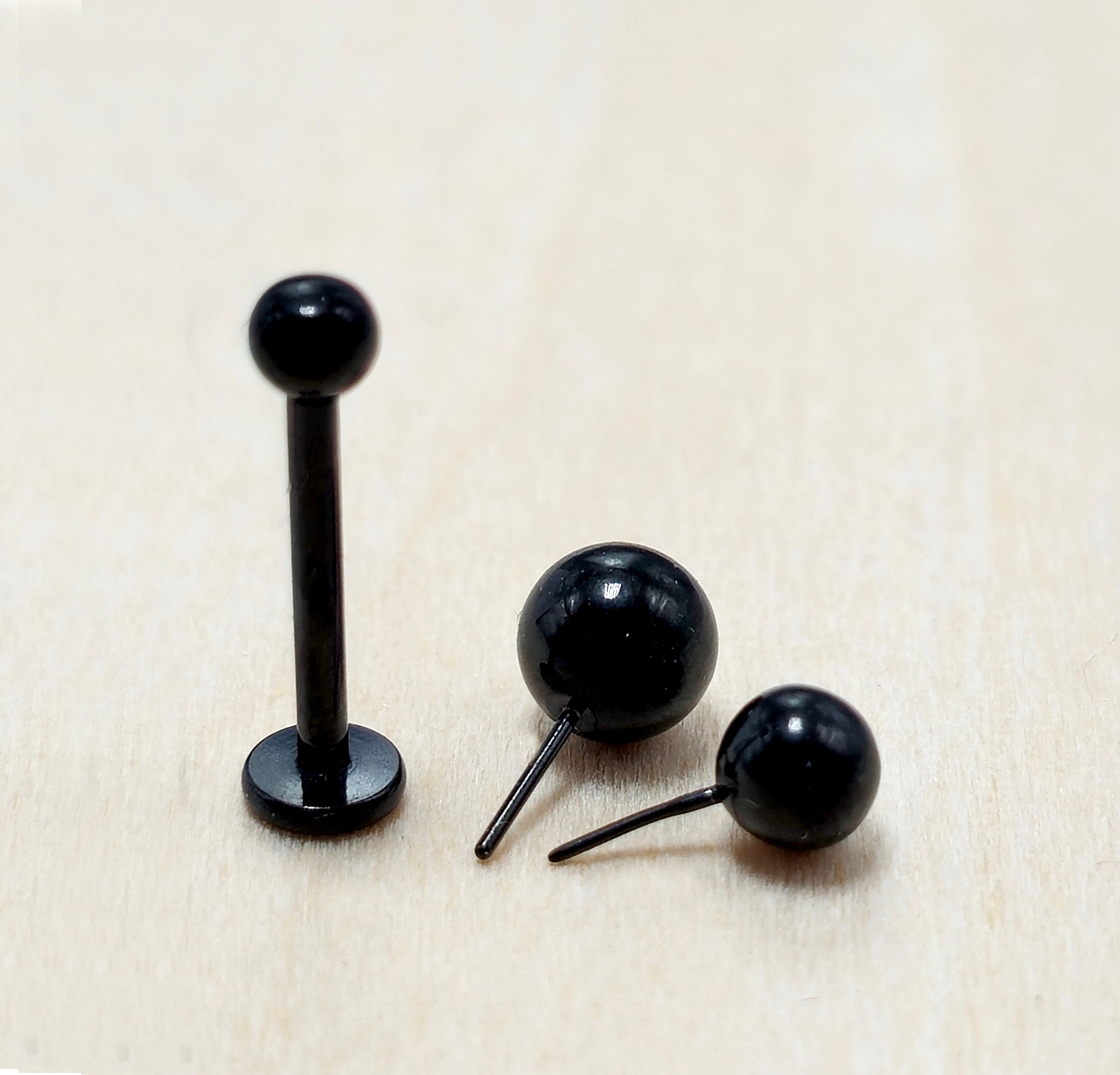 Titanium Threadless Black Labret Stud Piercing 18g 16g Lip Piercing Jewelry, Tragus Helix Cartilage Madonna Medusa Side Labret