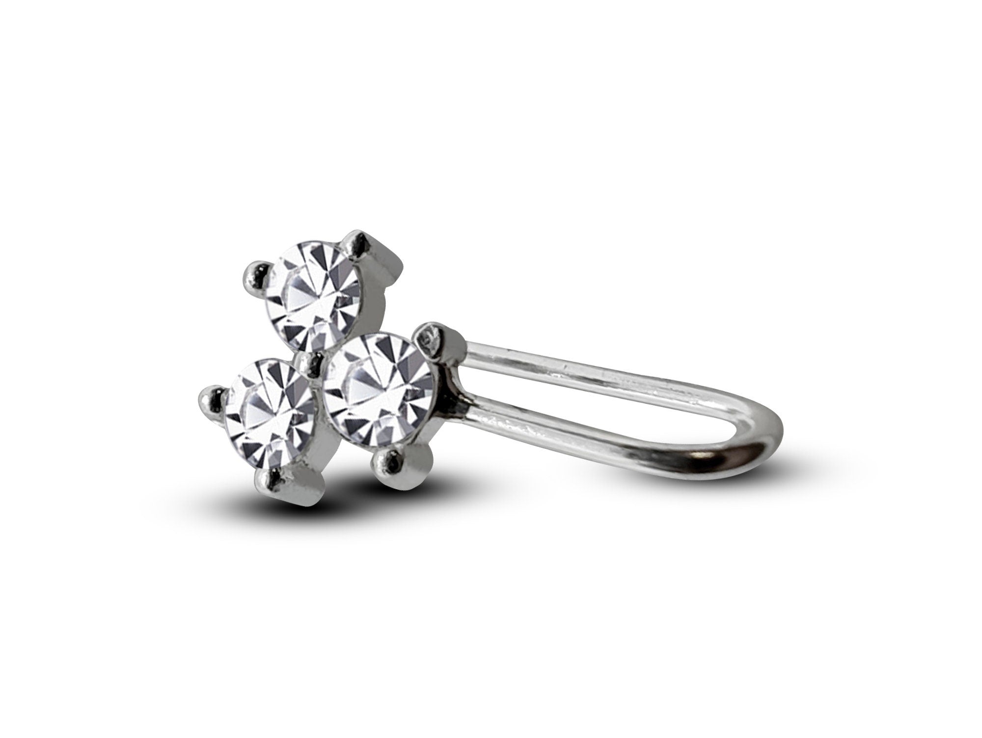 Silver Round Nose Cuffs, Nose Clip Pin, Nose Jewelry for Women with CZ Crystals - Fake Nose stud