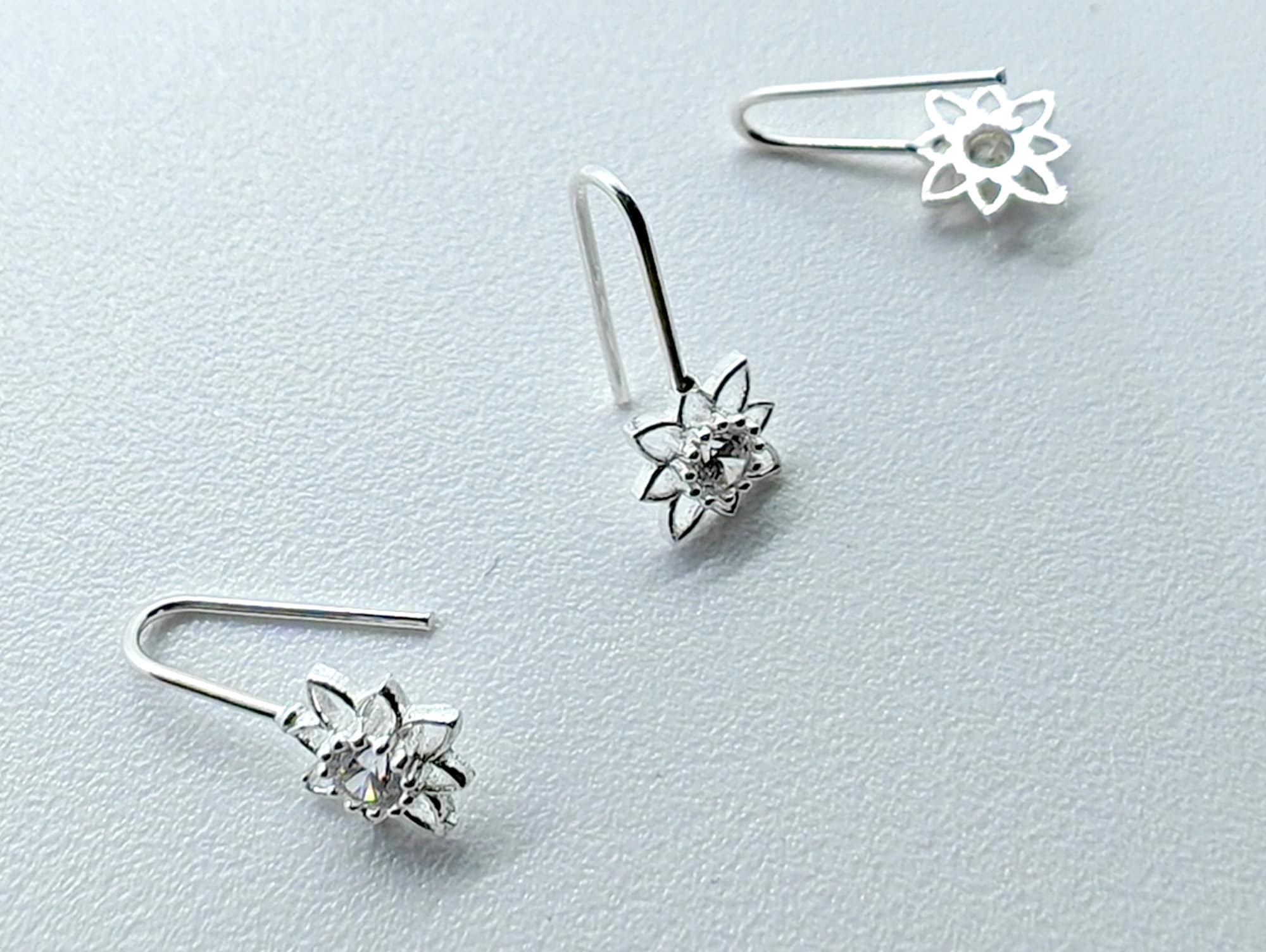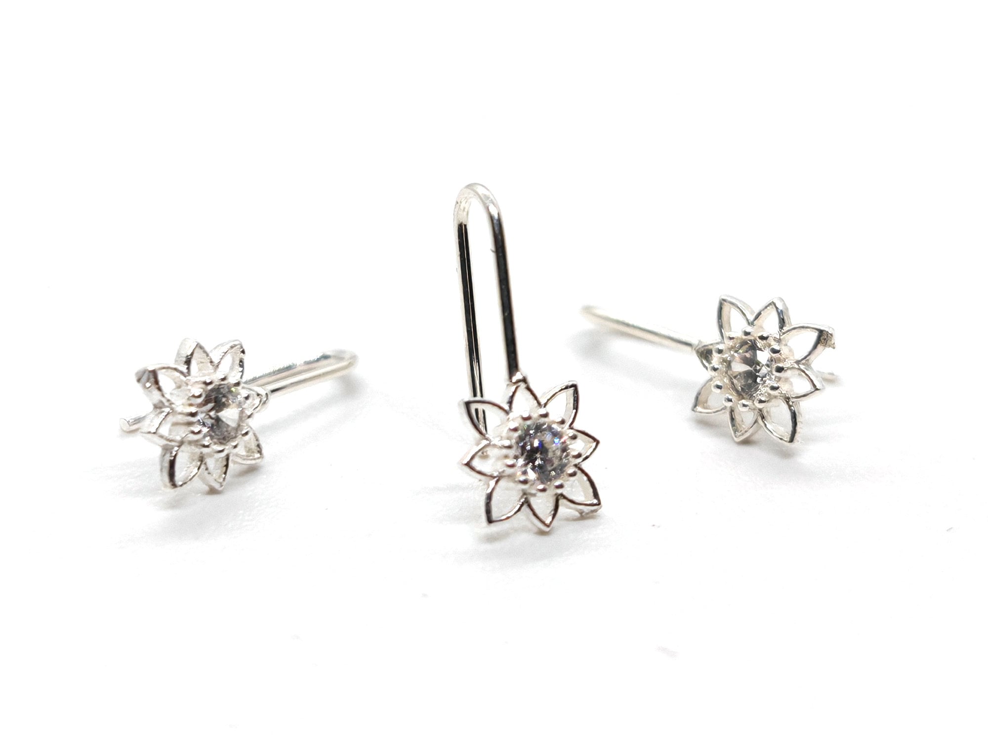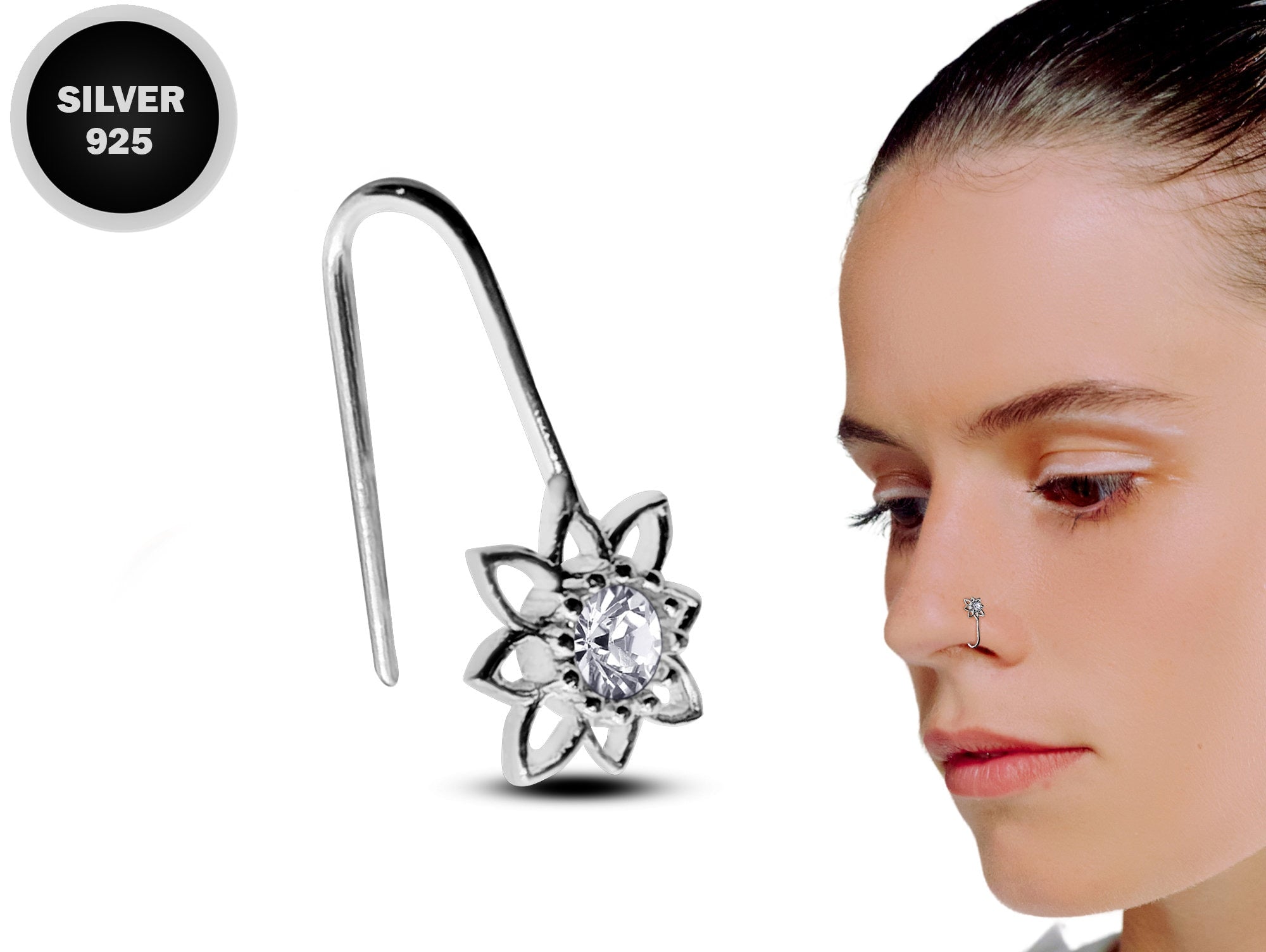Sterling Silver Filigree Flower Design Nose Clip, Nose Pin, Nose Jewelry for Women with CZ Crystals - Fake Nose stud