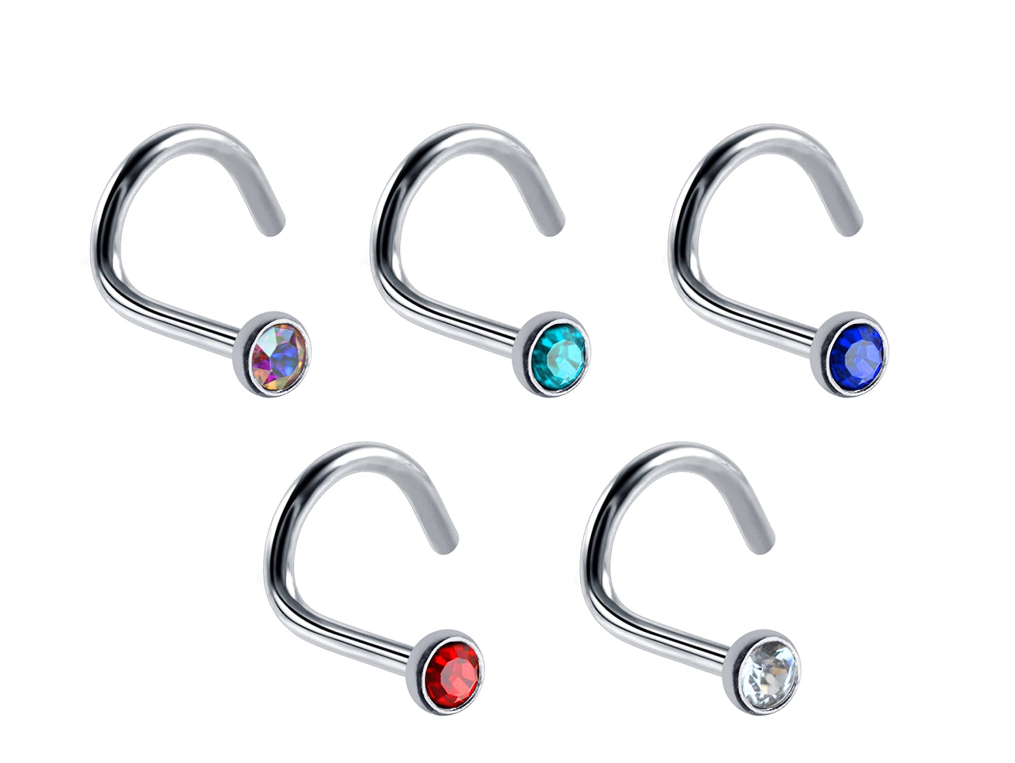 Titanium 18G Nose Studs Nostril Screw with Bezel Set Crystal size 2.5mm - Nose Piercing, Nasallang Studs Length 8mm