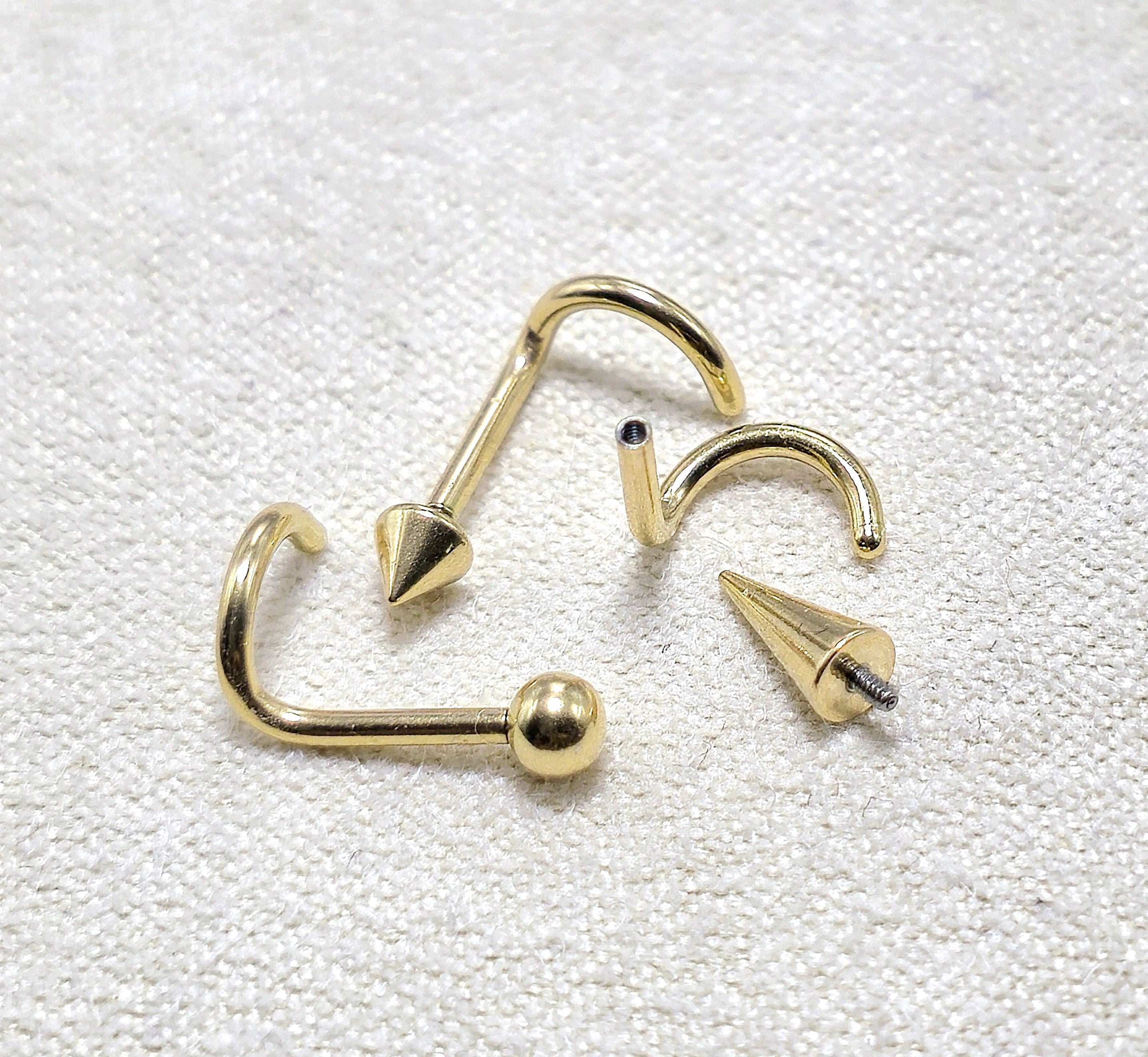 Titanium Gold Nose Stud Screw, Nostril Jewelry - 18G Internally Threaded in Ball Spike and Cones