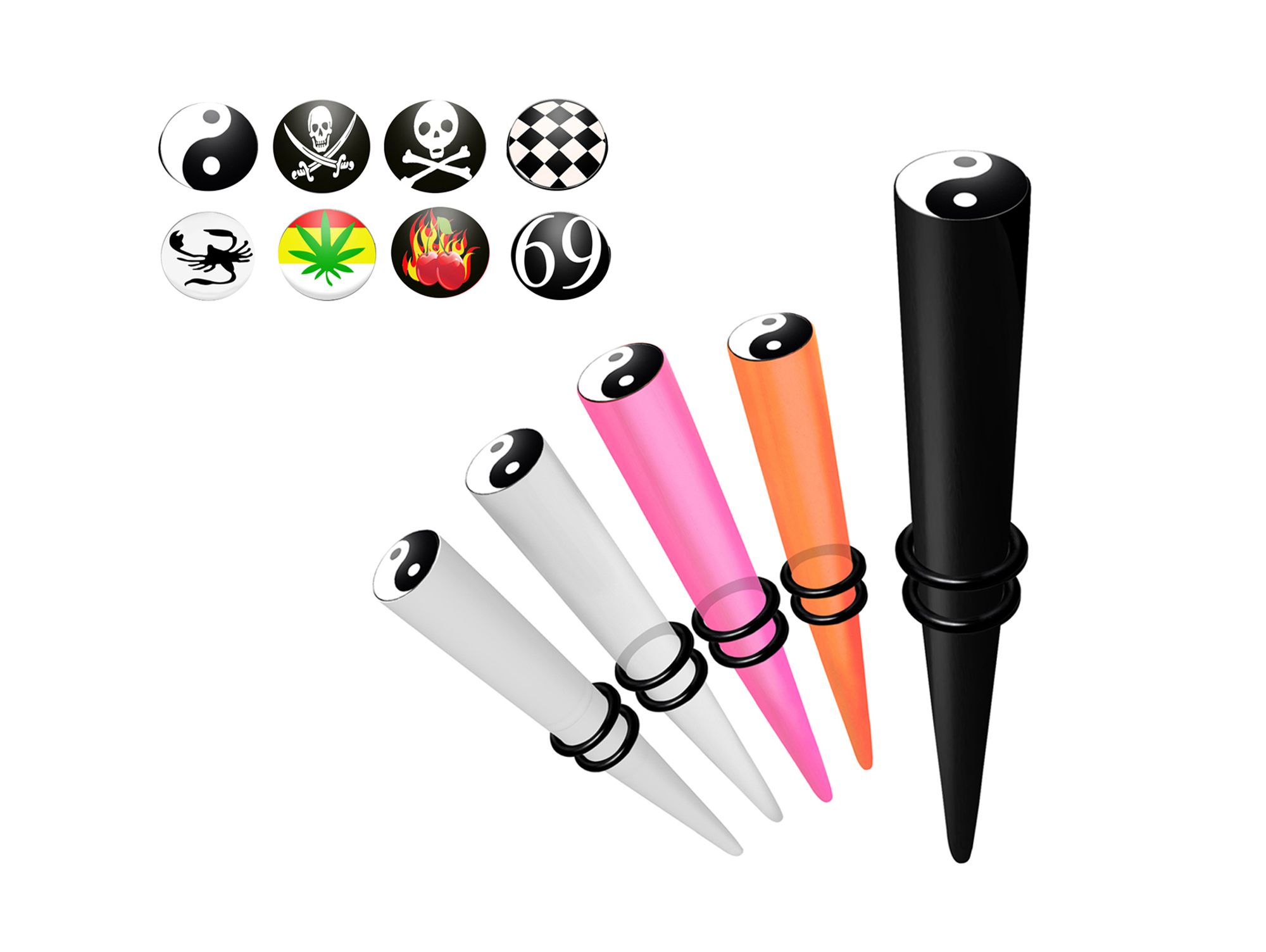 Ear Stretching Kit Acrylic Tapers with Logo Design - 1 pair (2pcs) Ear Expender, Tunnel Gauges Size 8G 6G 4G 2G 0G 00G