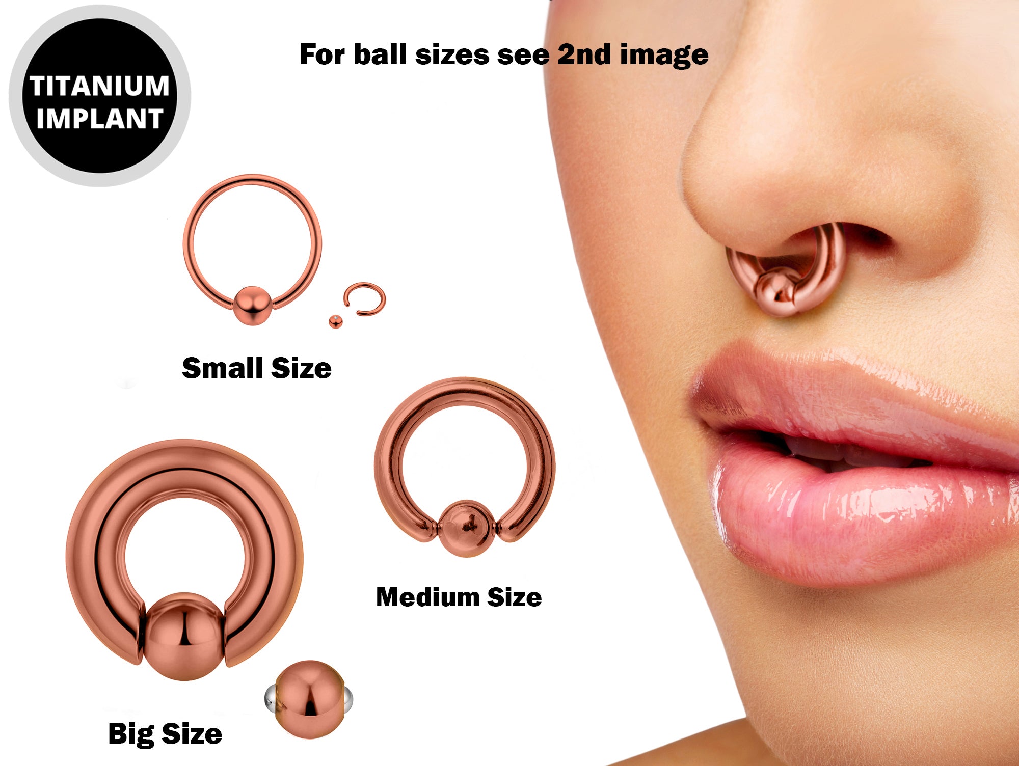 Titanium Rose Gold Captive Ball Ring Piercing 18g to 00g ,Big Gauge is with Spring Ball Septum Nose Piercing Jewelry Also Piercing for Genital