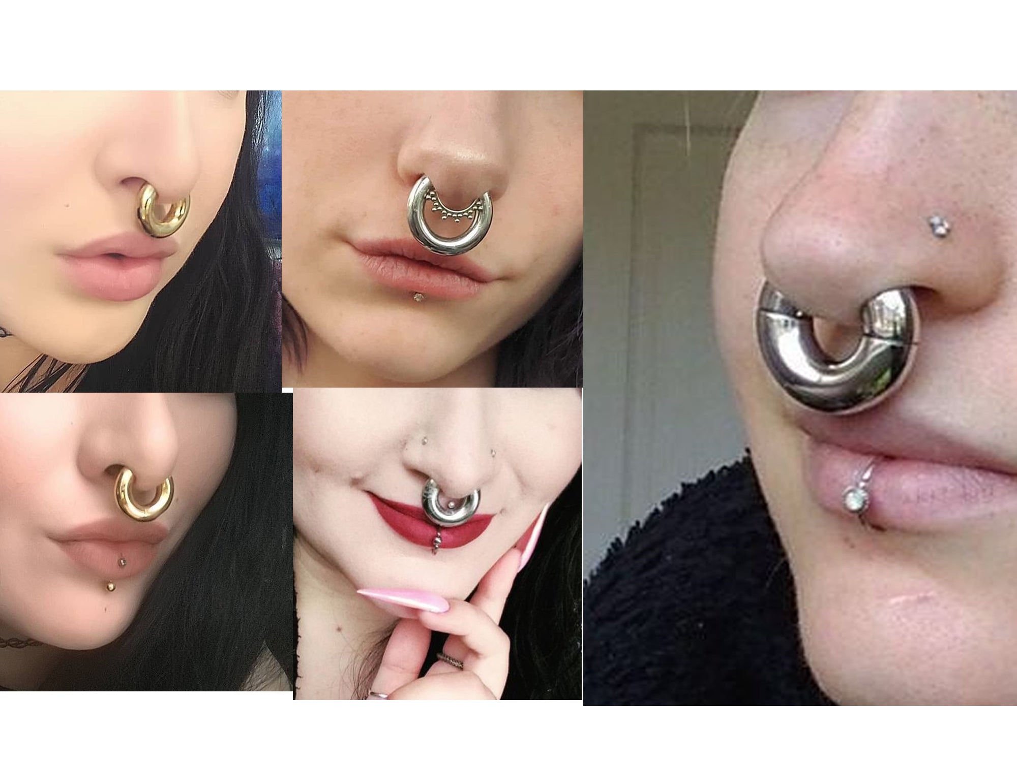 Septum Clicker Nose Ring, Septum Jewellery Large gauge, Big Size Nose Piercing - Segment Hinged Ring - 12G to 4G