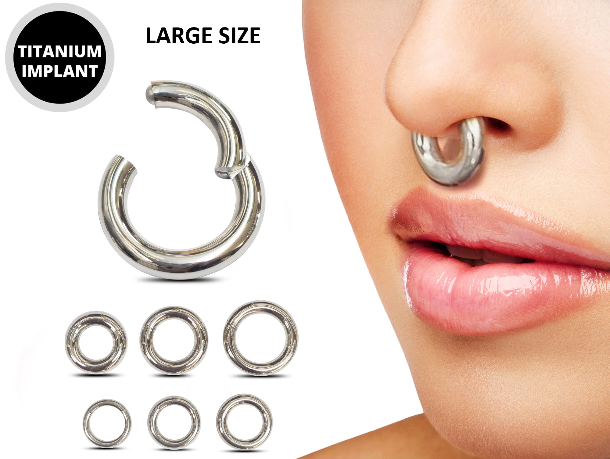 Large Gauge Titanium Septum Clicker Nose Ring, Septum Jewellery Large gauge, Big Size Nose Piercing - Segment Hinged Ring - 12G to 4G