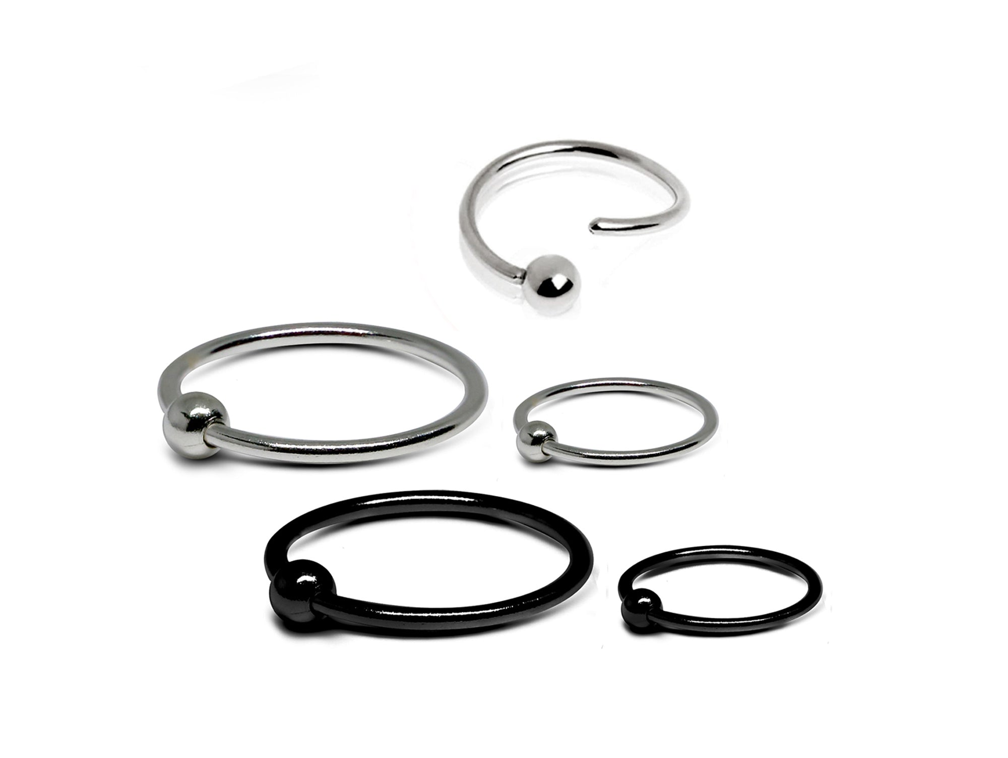 Sterling Silver Hoop Ball End Nose Ring, Black Captive Nose Hoop 24g (0.6mm) Nose Piercing - Fixed ball - Clip on and Flexible easy to Bend