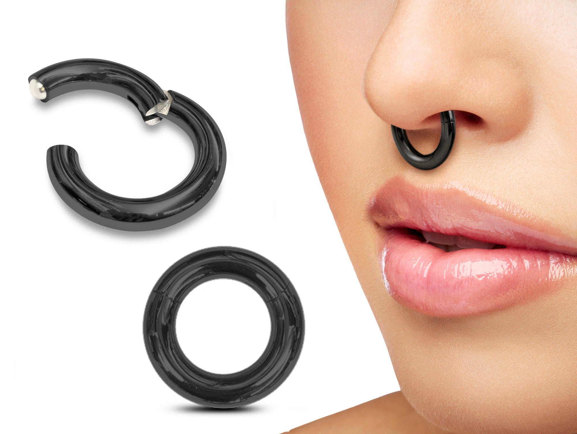Titanium Black Septum Clicker Nose Ring, Septum Jewellery Large gauge, Big Size Nose Piercing - Segment Hinged Ring - 12G to 4G