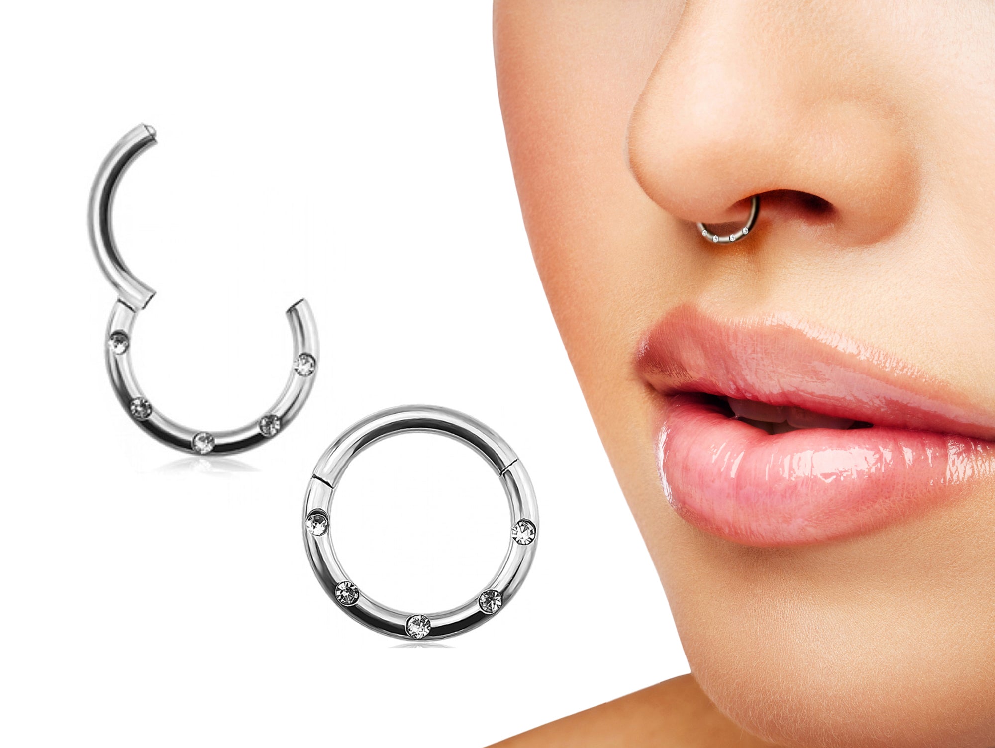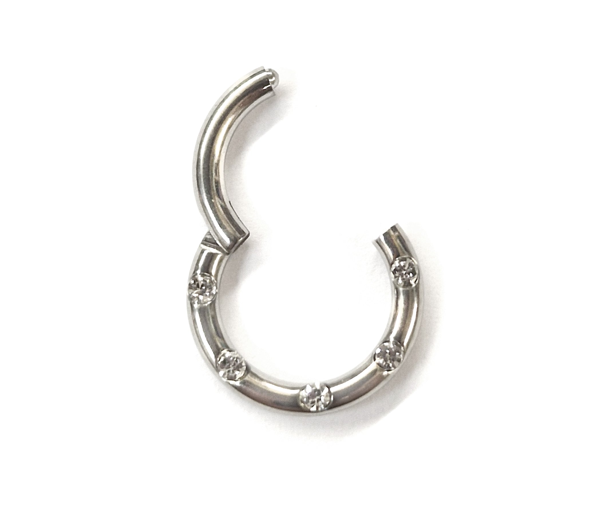 Titanium Clicker Septum with CZ Clear Crystal- 14g Nose Ring Also for Daith Ring, Helix Cartilage Piercing, Lip Ring - Implant Grade ASTM F136