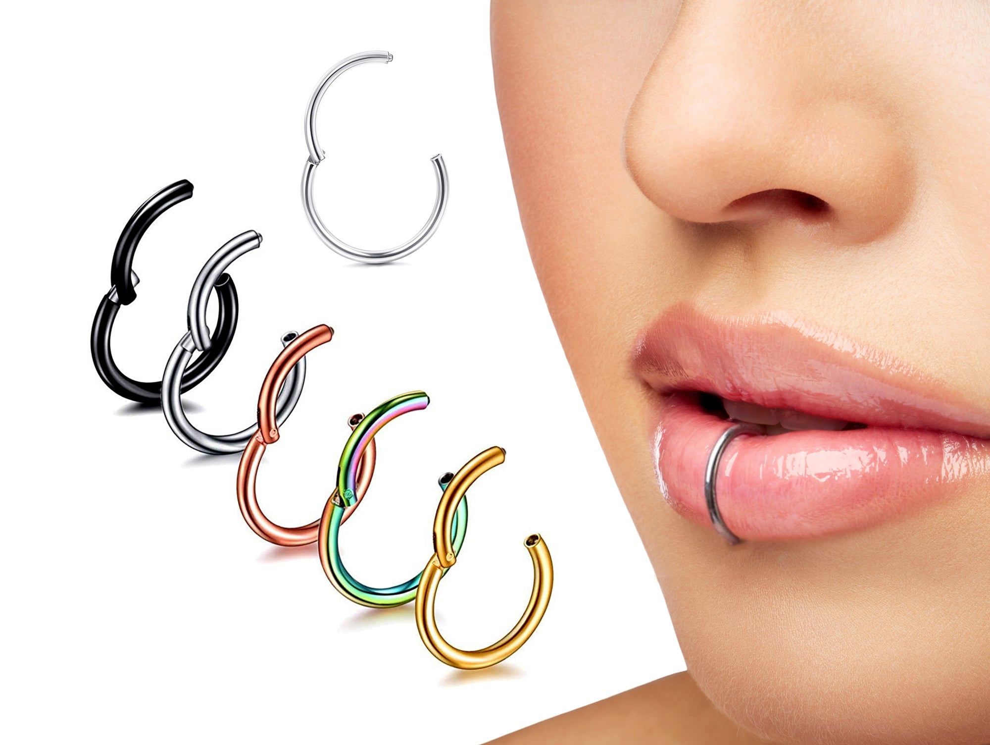 Titanium Lip Ring, Lip Hugger - 20g 18g 16g 14g Lip Piercing Hinged Ring - Clicker Hoops Steel, Gold, Rosegold, Black, Rainbow