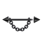 Black Cone / Spike Nose Bridge Barbell Upper Nose Piercing with Steel Chain - 16G 14G Straight Barbell - Choose Spike and Cone Size