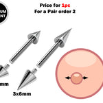 Titanium Cone / Spike Nipple Barbell, Nipple Jewelry Studs 16g 14g Nipple Piercing - Straight Barbell Internally Threaded