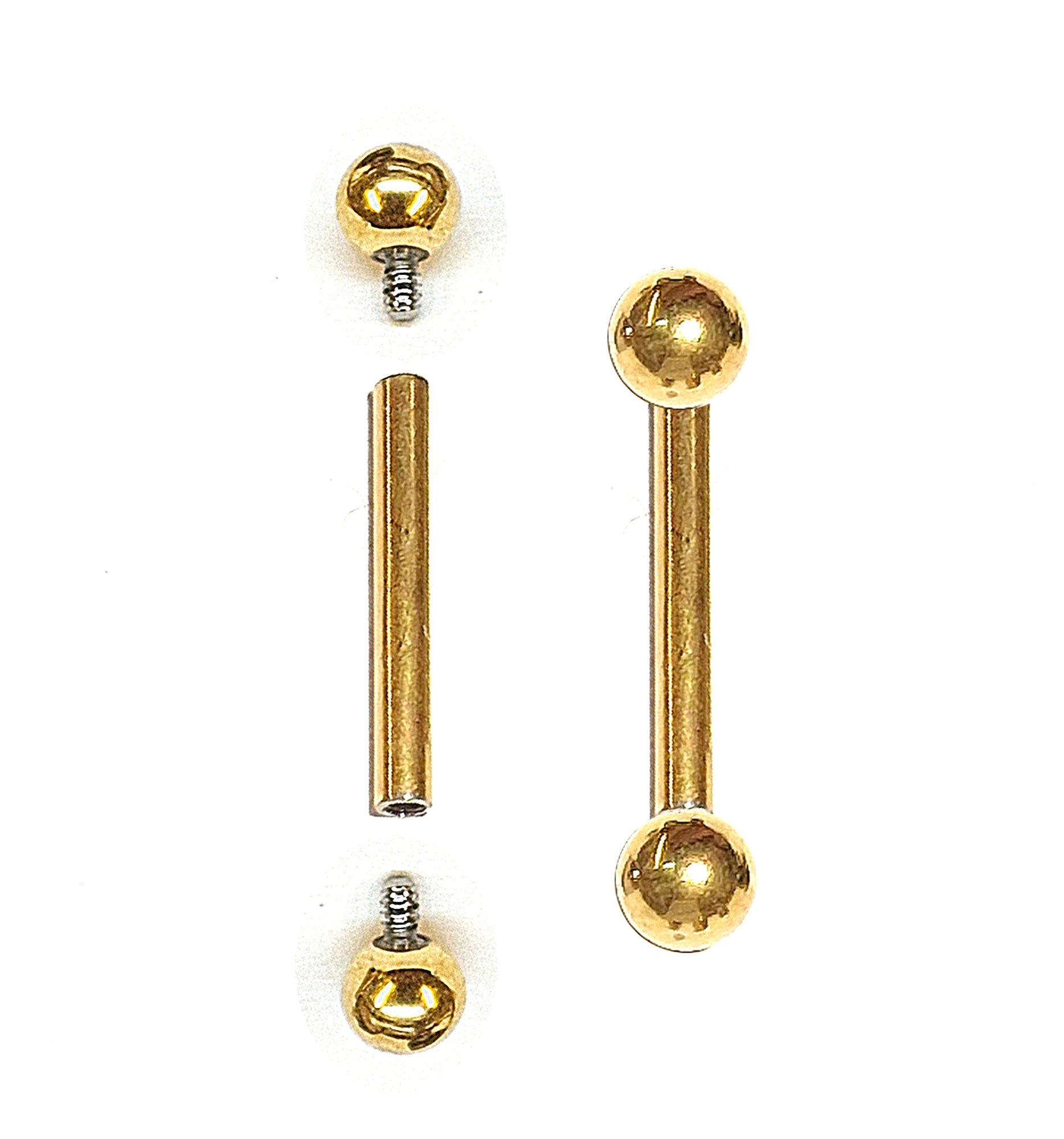 Titanium Gold Tongue Bar 16G 14G Internally Threaded Barbell Piercing, Nipple Jewellery, Barbell Earrings, Ear Cartilage - 6mm to 24mm