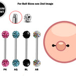 Titanium Nipple Barbell with Disco Ball Crystal, Nipple Jewelry Studs 16g 14g Nipple Piercing - Externally Threaded