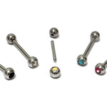 Titanium Tongue Piercing Bar, Barbell Stud with Gem Ball CZ Crystals - 18g 16g 14g Body Piercing Also for Nose Bridge, Nipple Bar