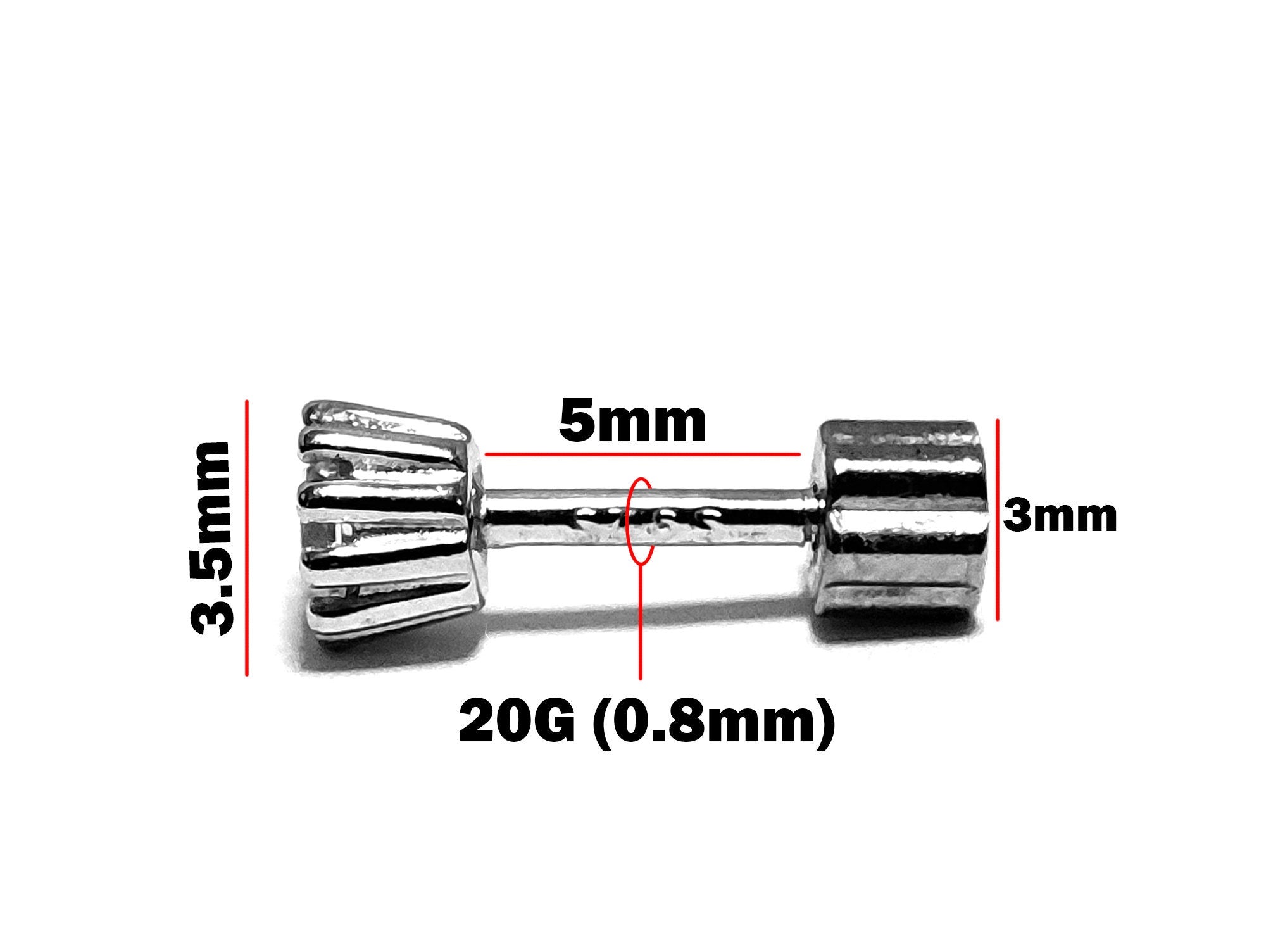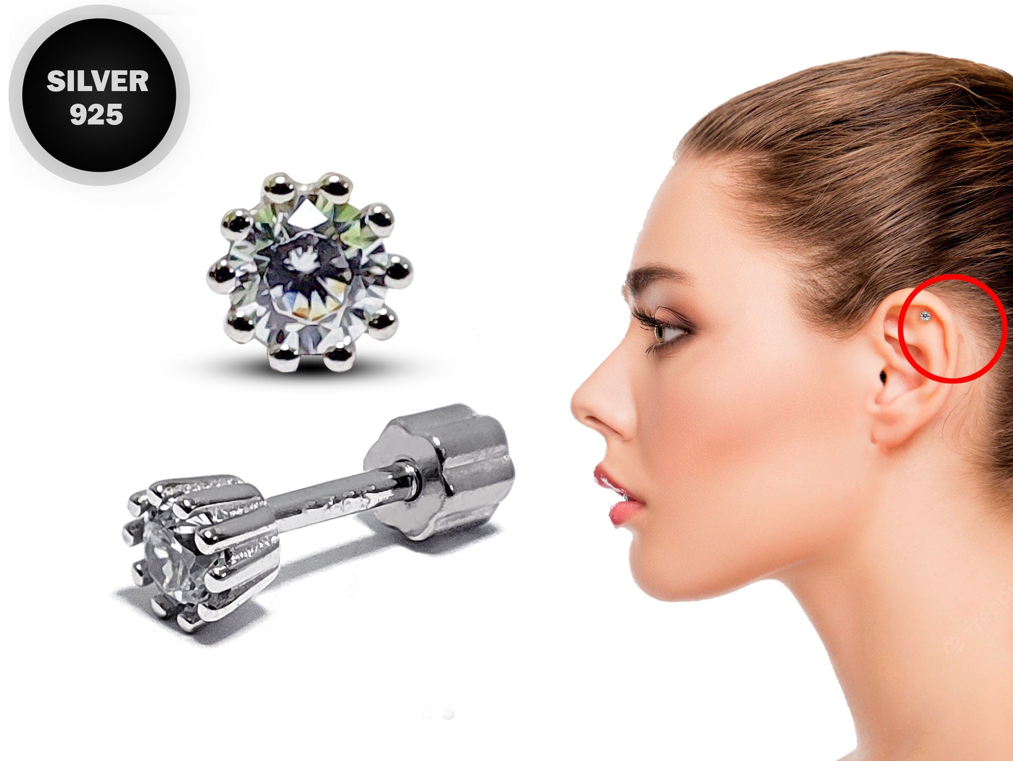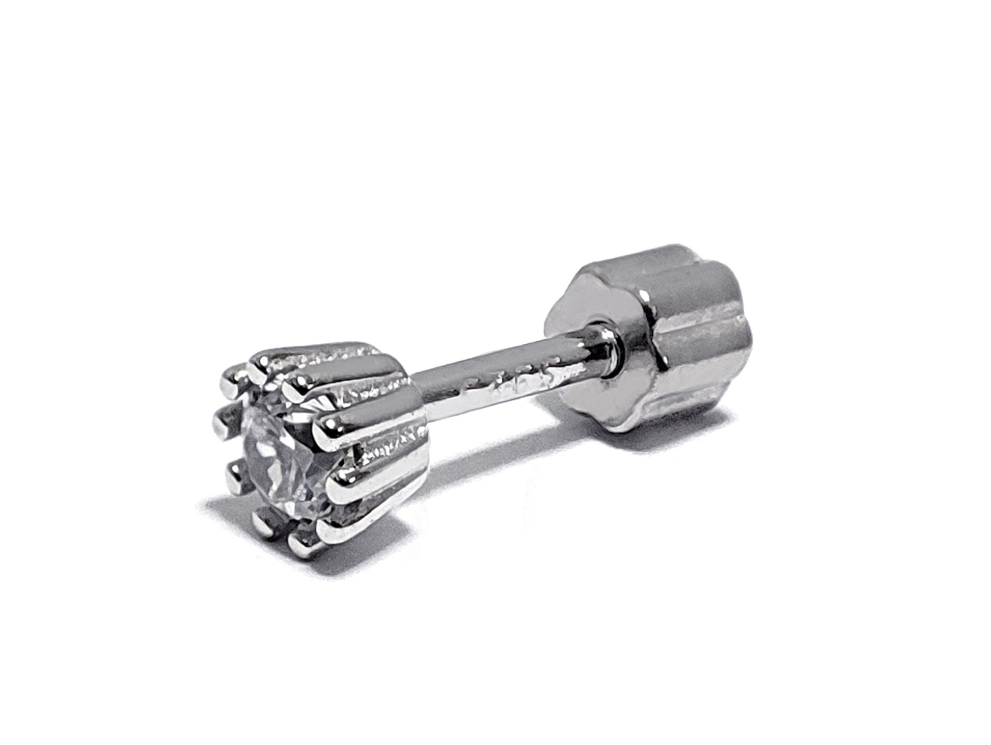 Silver Round Cartilage Helix Earring Crown with CZ Clear Crystals - 20G Ear Barbell Piercing Screw Back- Helix Piercing Jewellery