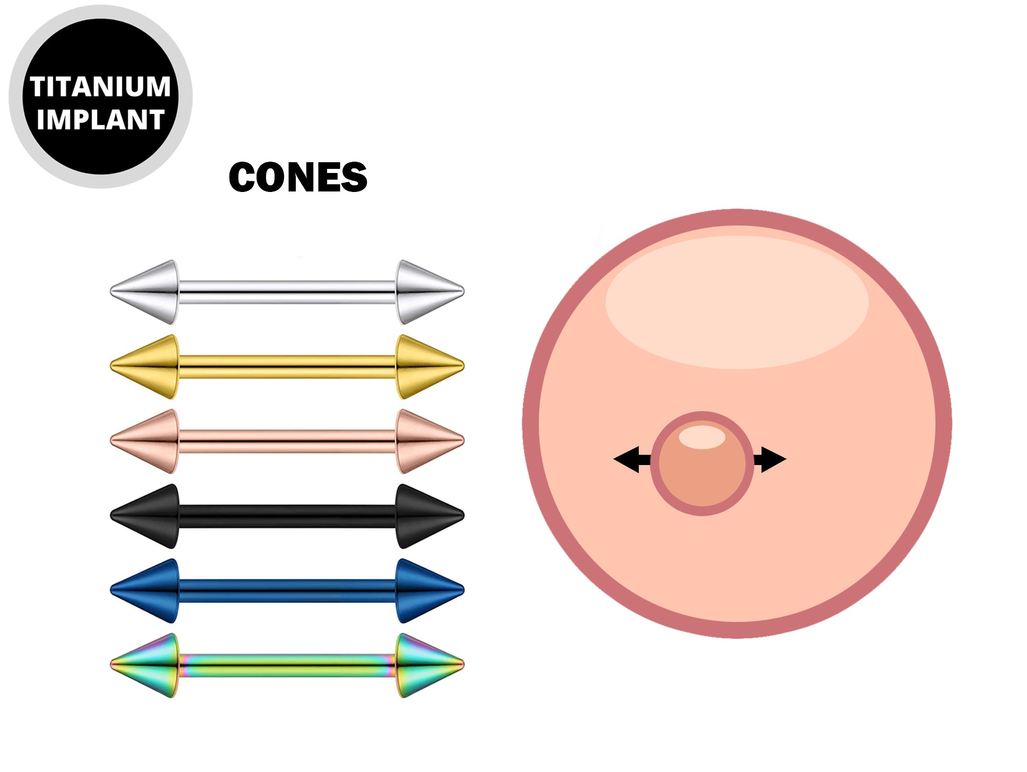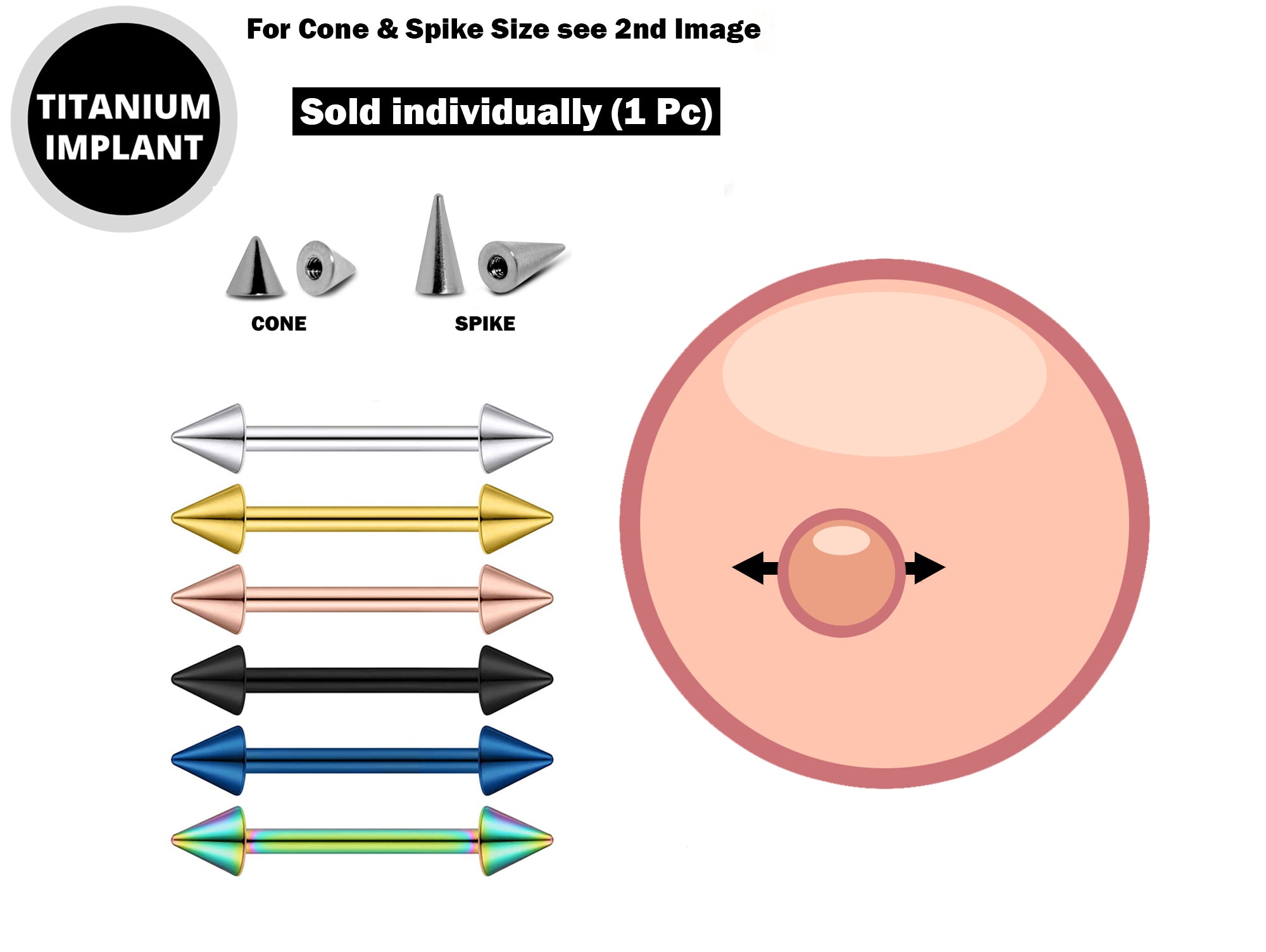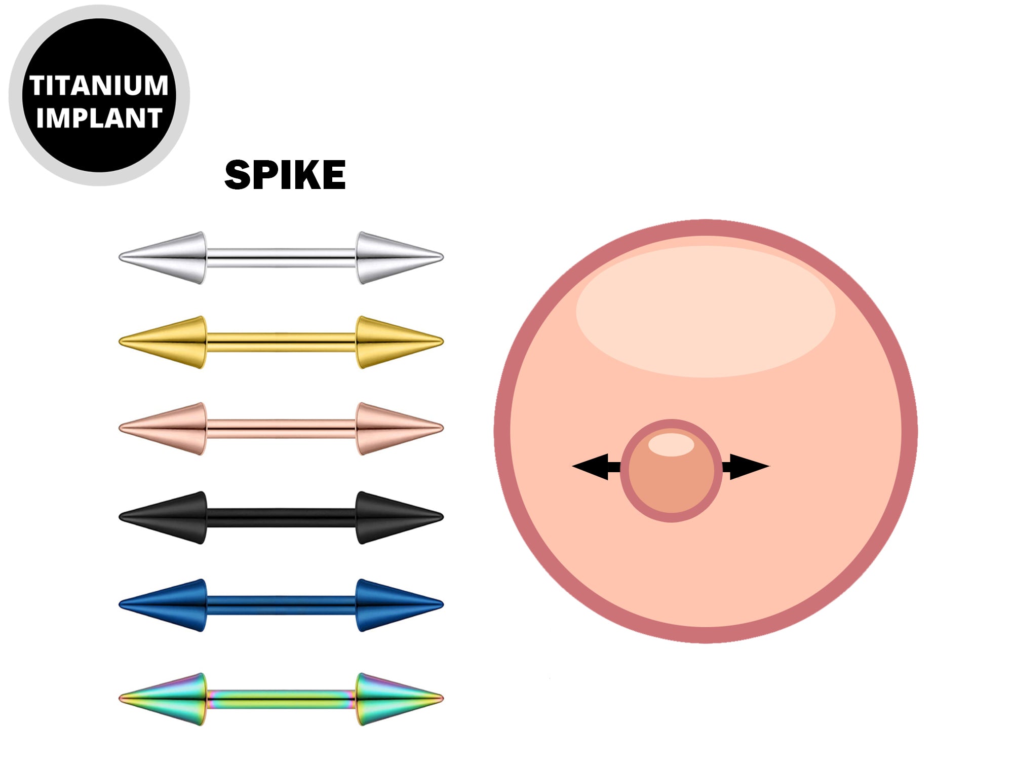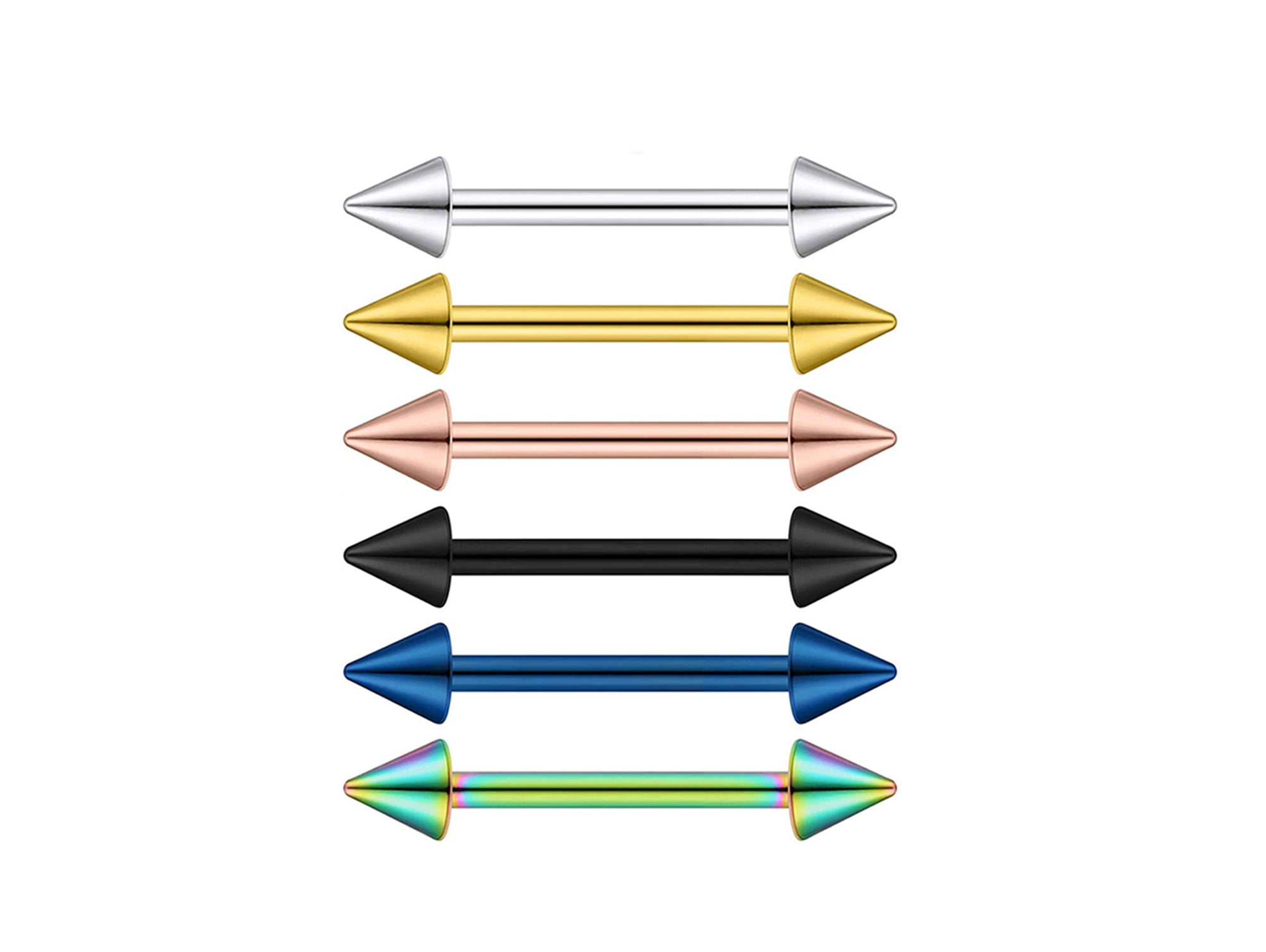 Spike Barbell Nipple Piercing, Nipple Bar - Titanium 20G 18G 16G 14G - Coloured Barbell Stud Body Jewellery