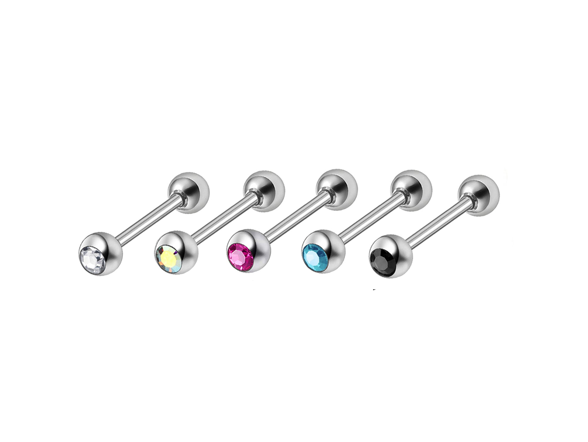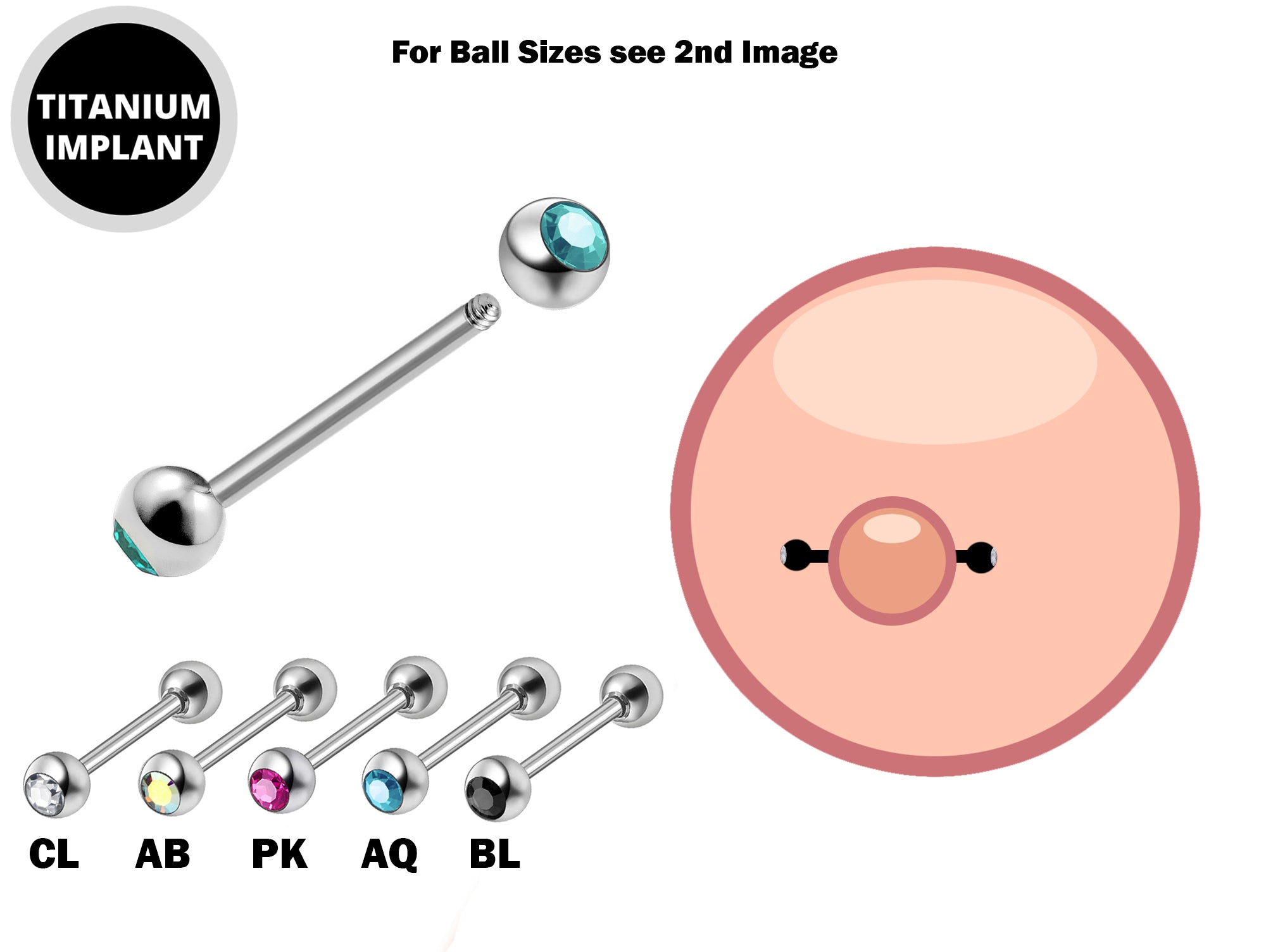 Titanium Nipple Barbell with Gem CZ Crystal, Nipple Jewelry Studs 16g 14g Nipple Piercing - Externally Threaded - Double Gem