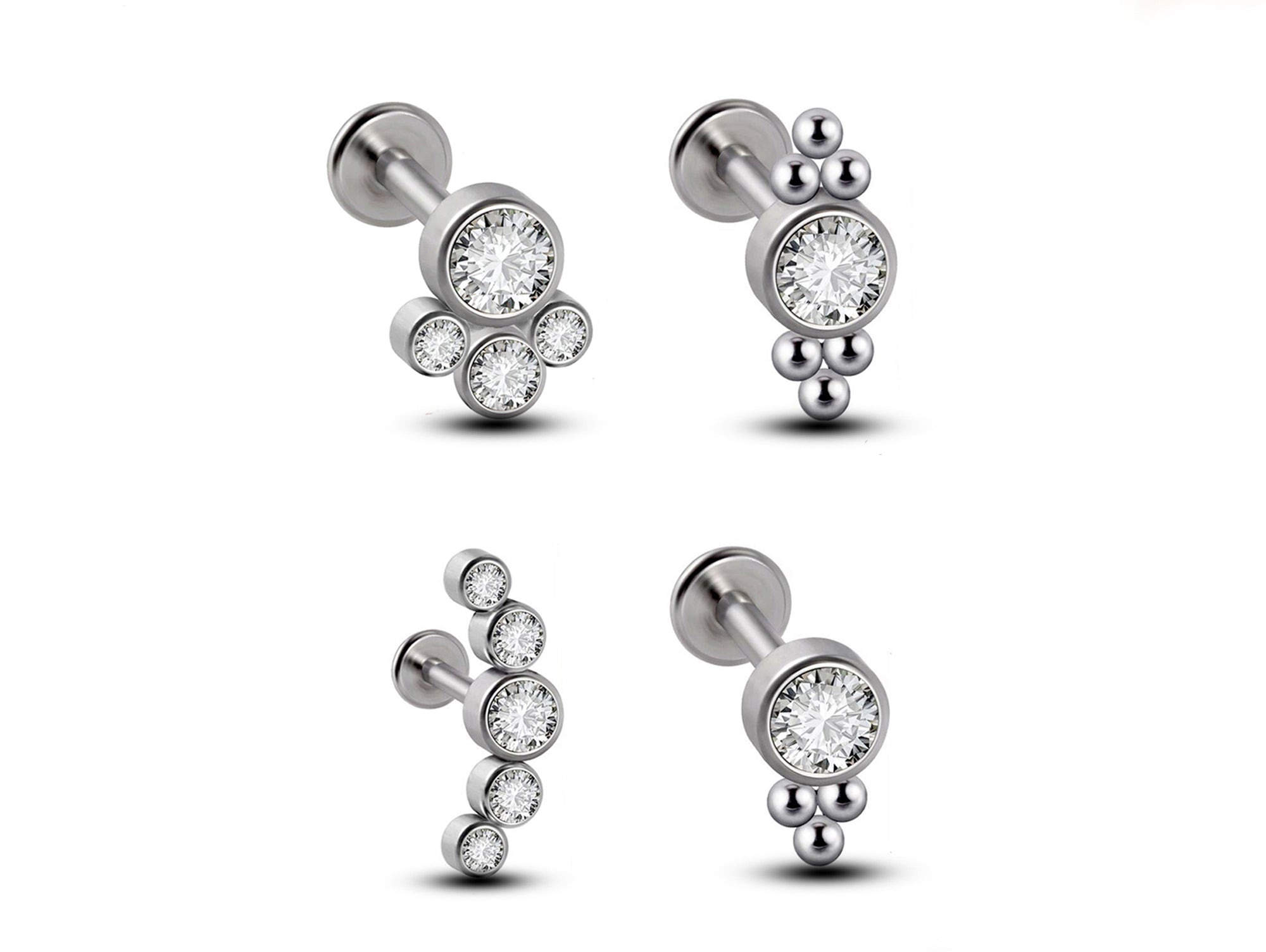 Titanium Tragus Earring 16g Lobe Piercing Earring Jewelry with CZ Crystals - Labret Ear Stud Cartilage, Helix, Upper Ear, Conch, Lip Studs