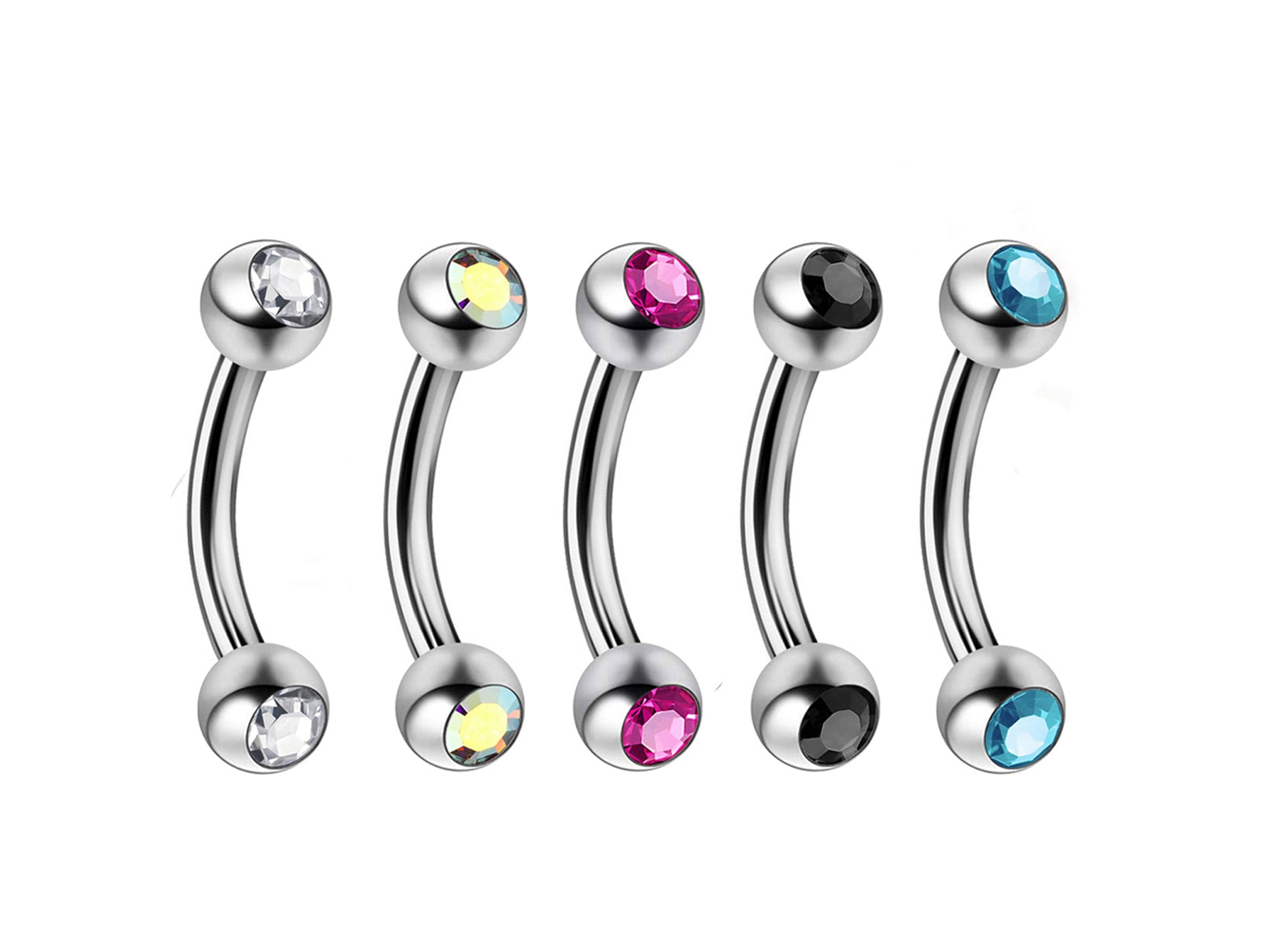 Titanium Eyebrow Stud, Eyebrow Jewelry with Gem Ball Crystal - 18g 16g 14g Curved Bar Body Piercing also for Ear Piercing, Lip Barbell