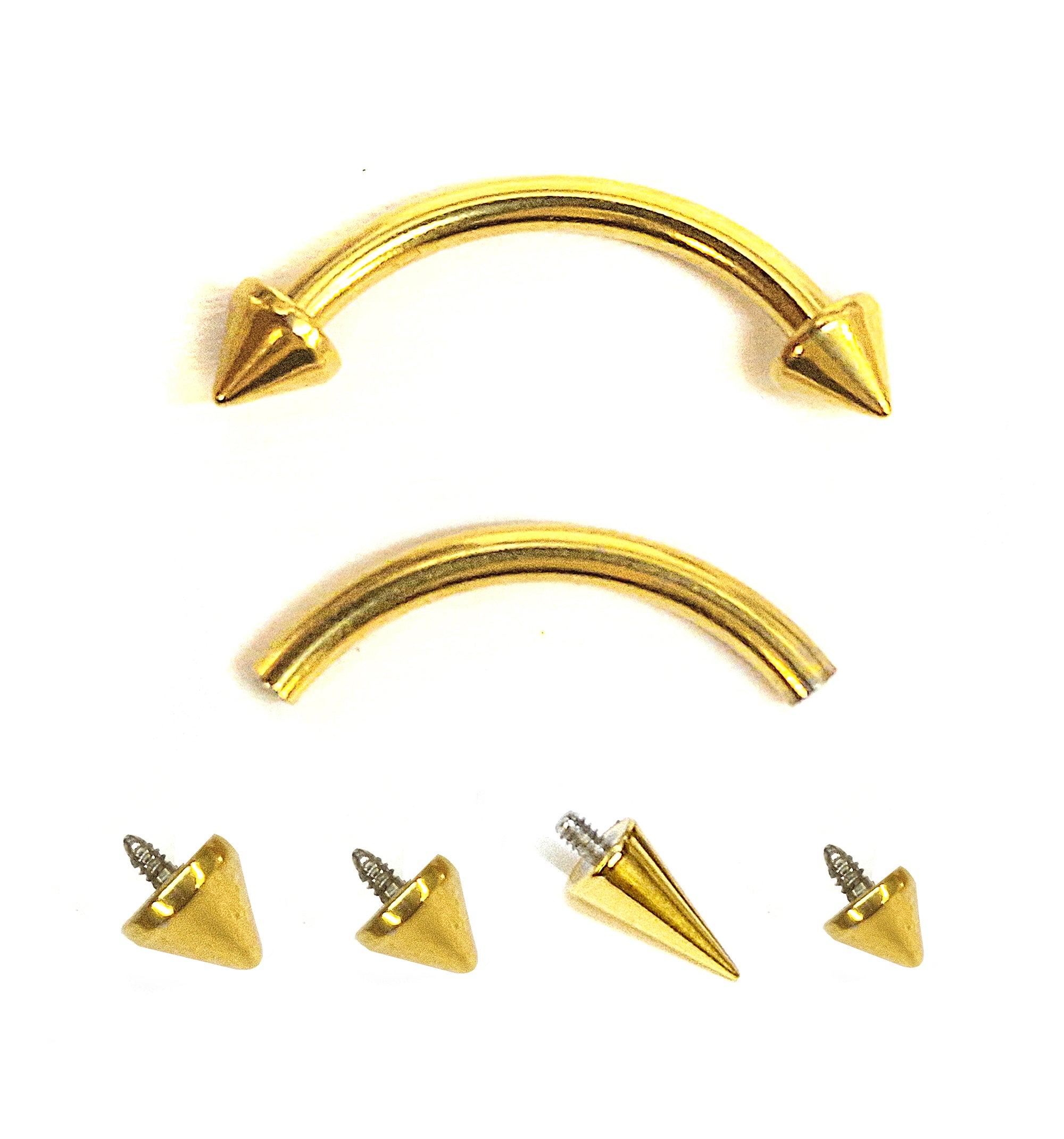 Titanium Gold Spike Eyebrow Jewelry 16G 14G Internally Threaded Curved Barbell Cones/Spike Lip Piercing, Rook Barbell, Cartilage Piercing