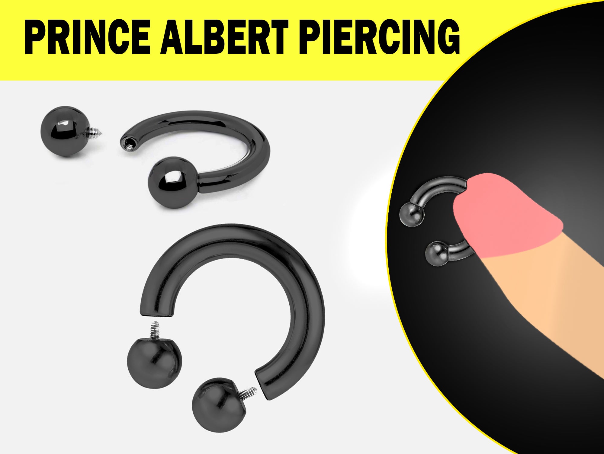 Black Titanium PA Ring, Horseshoe Prince Albert Piercing - 10g to 00g Genital Piercing Painful Pleasure Jewelry Also Piercing for Septum, Earlobe