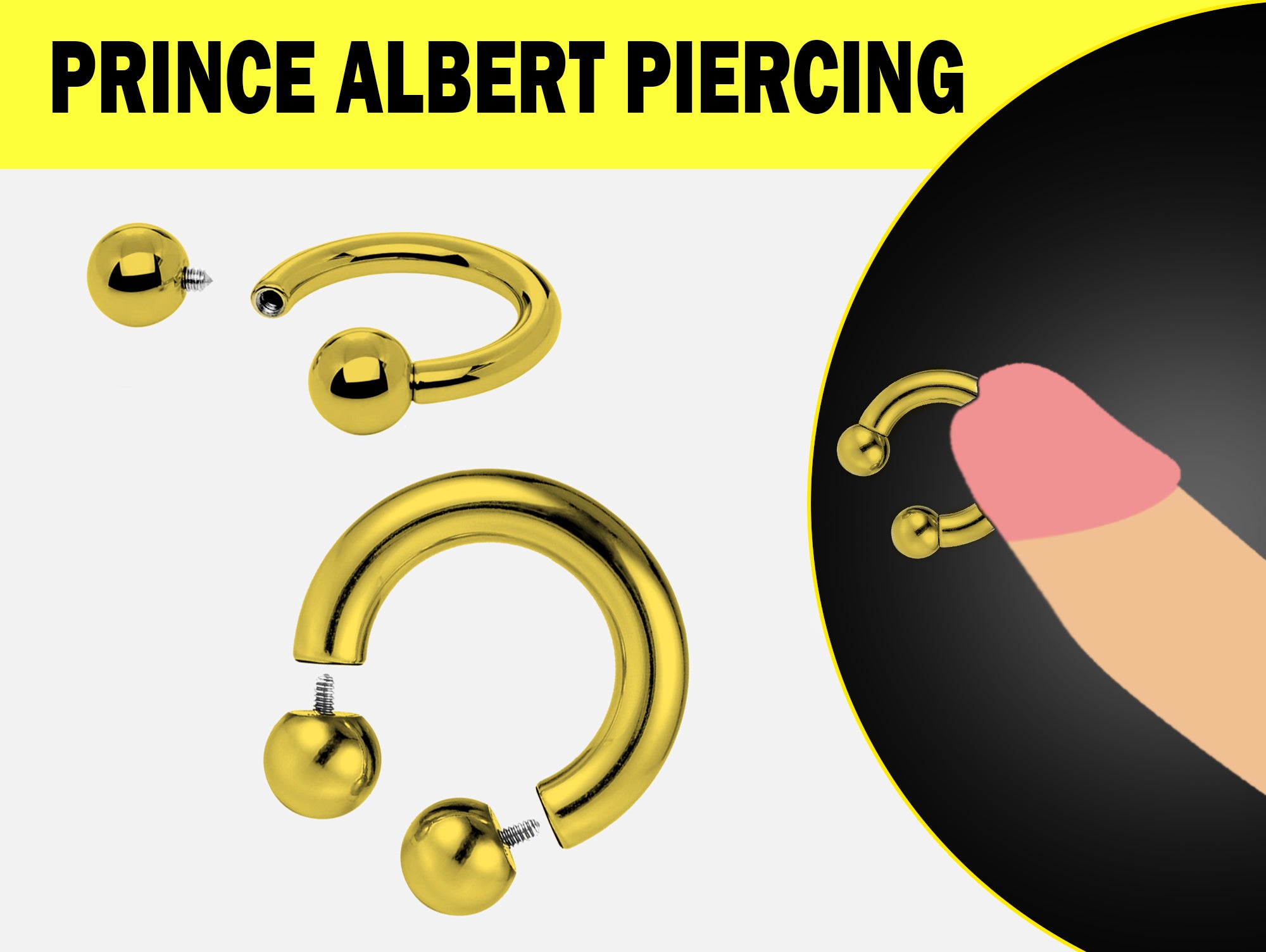 Gold Titanium PA Ring, Horseshoe Prince Albert Piercing - 10g to 00g Genital Piercing Painful Pleasure Jewelry Also Piercing for Septum, Earlobe