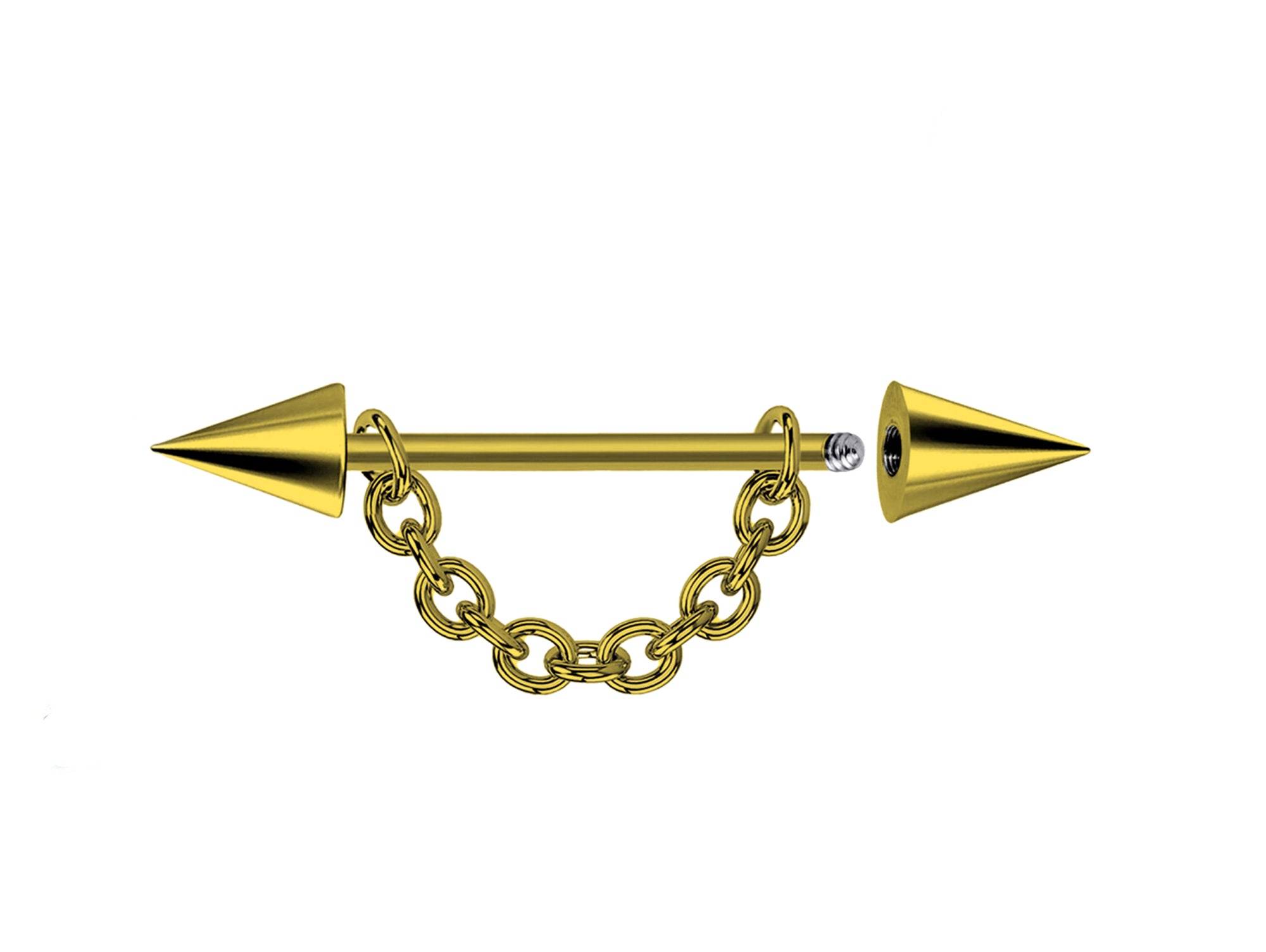 Titanium Gold Cone / Spike Nose Bridge Barbell Upper Nose Piercing with Steel Chain - 16G 14G Straight Barbell - Choose Spike and Cone Size