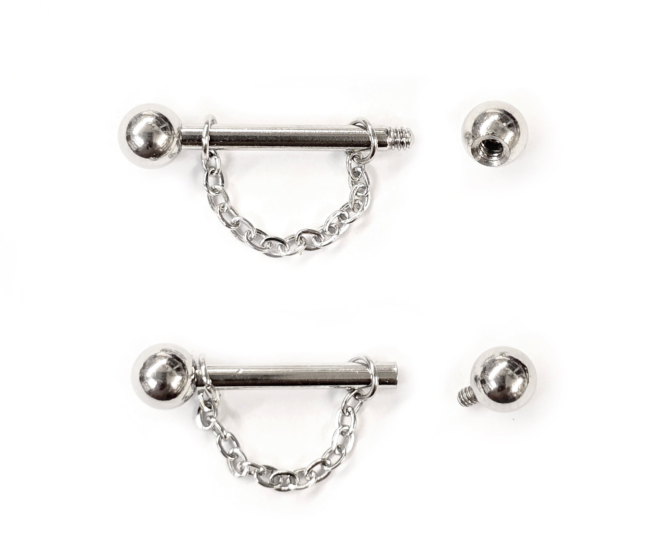 Nose Piercing, Titanium Bridge Barbell Internal / External Threaded with Piercing Chain - Bridge Chain Piercing also for Nipple Jewelry