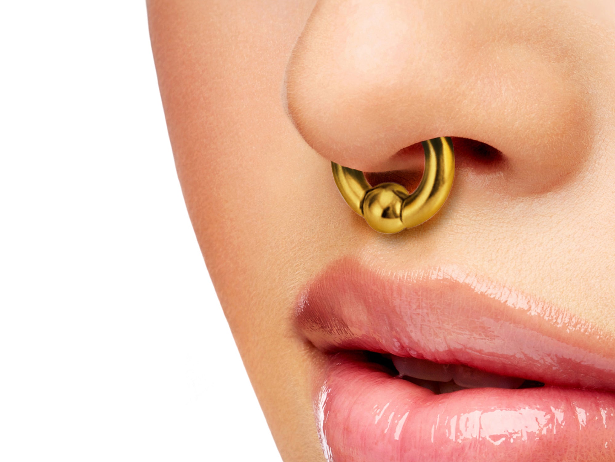 Titanium Gold Septum Piercing CBR Ball Closure Ring, Captive Bead Hoops with Custom Ball Colors 2G to 00G Nose Piercing - 1pc each order
