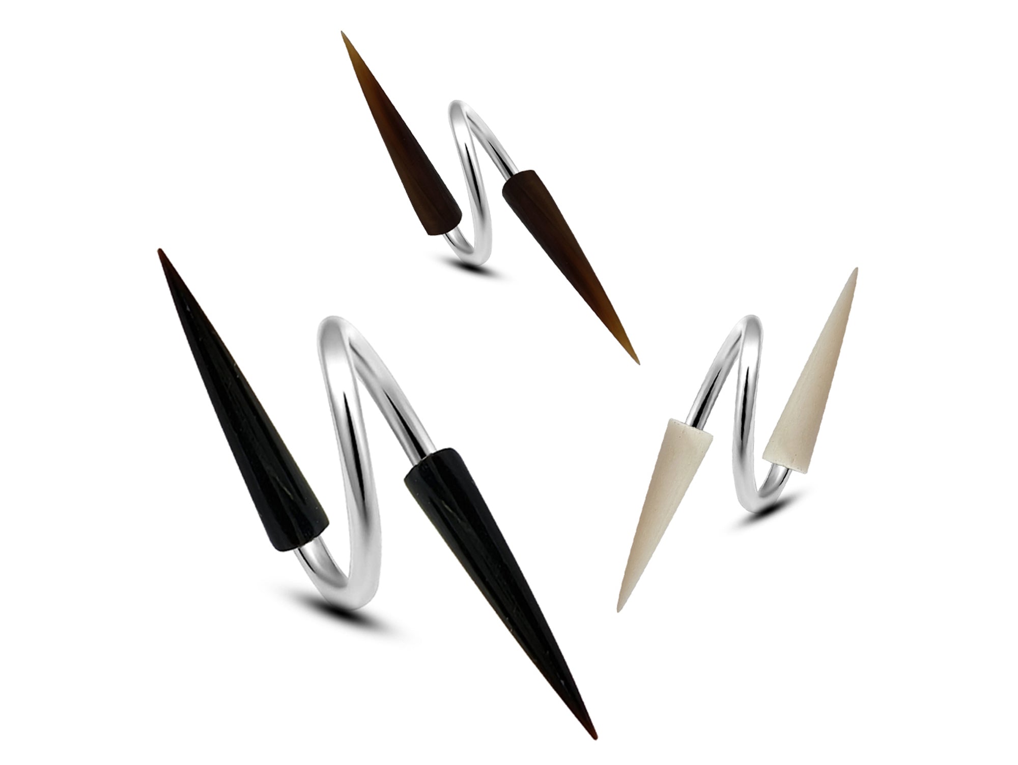 Spike Spiral Ear Piercing Stud Made with Buffalo Horn - Hand Carved - 14G Titanium and very Light Weight - Long Spike Piercing