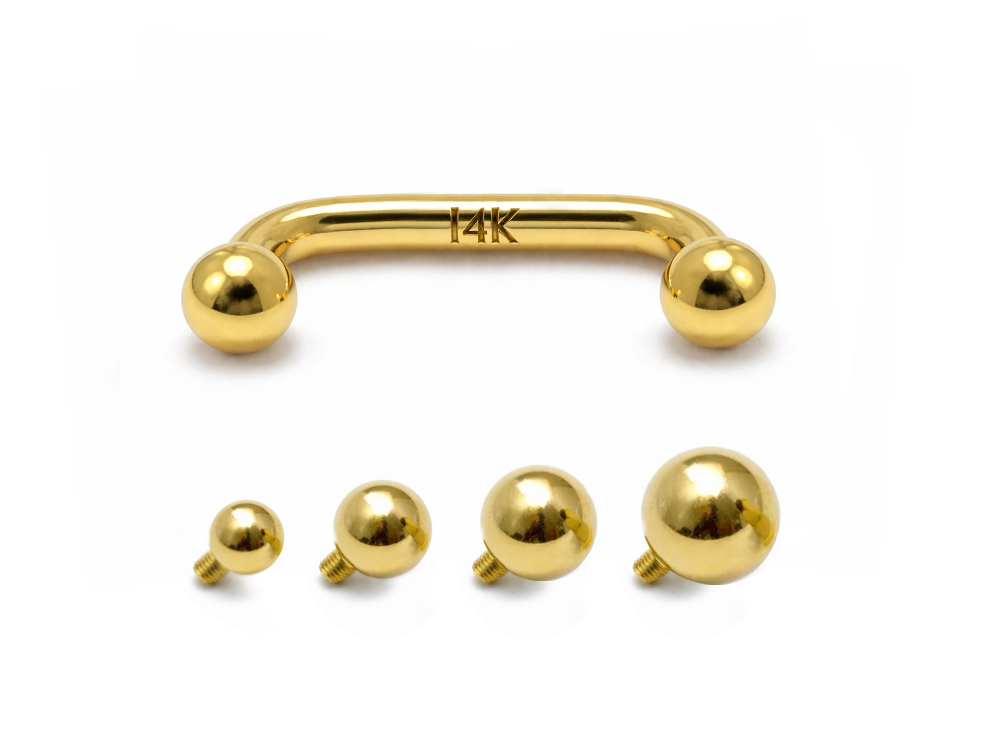 14K Gold Ball Surface Barbell Dermal Staple Piercing Internally Threaded 16G 14G Body Jewellery