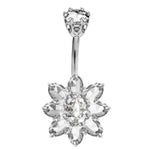 Flower Belly Bar, Belly Rings Navel Piercing - Designer Belly Bars - Silver - Belly Button Ring - 14g (1.6mm) Length is 10mm