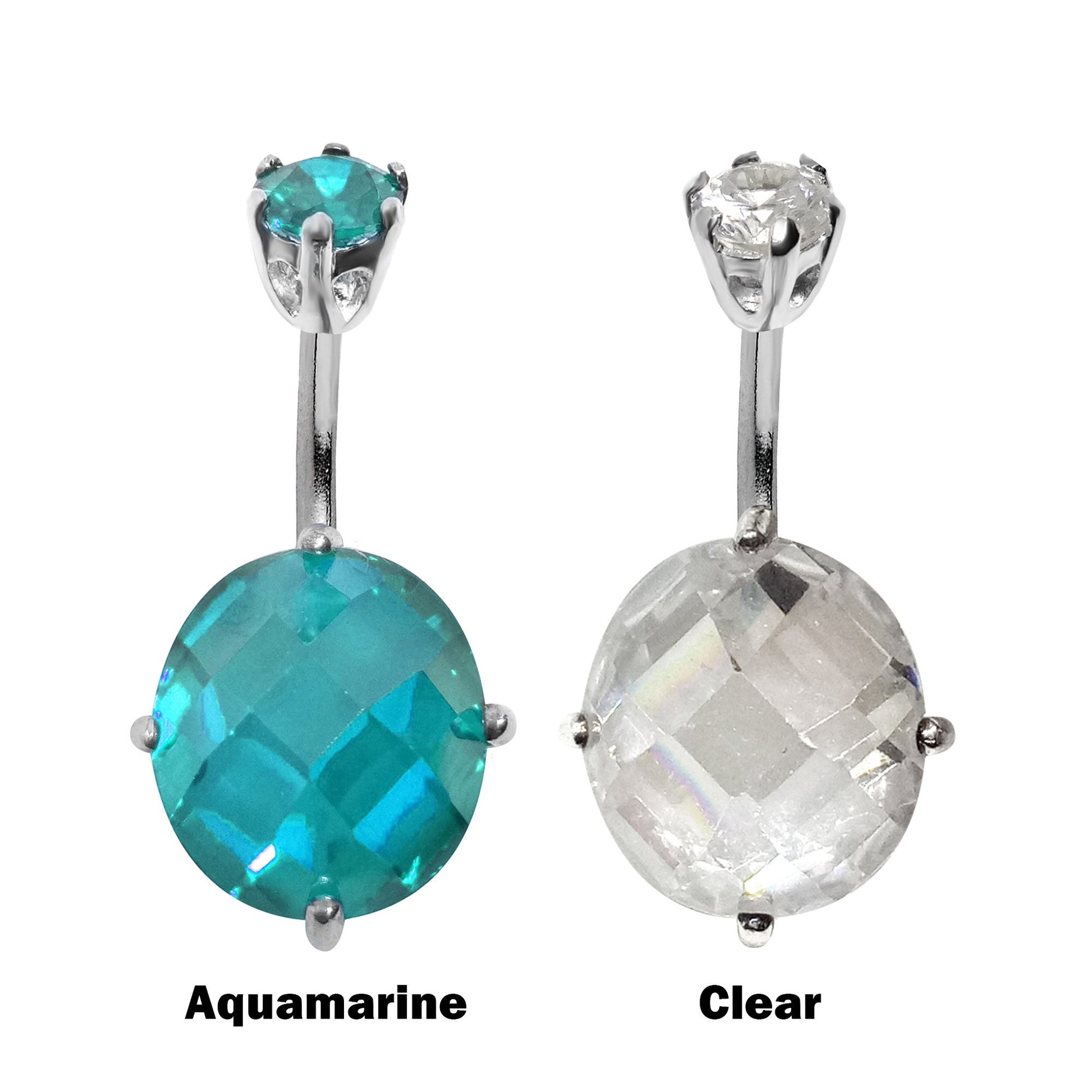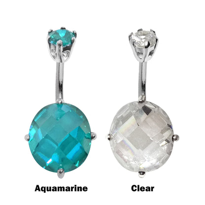 Silver Belly Bars, Belly Piercing - Designer Belly Ring with High Quality Oval CZ Crystals Navel Jewelry 14g (1.6mm) Length is 8mm to 10mm
