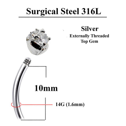 Silver Belly Bars, Navel Ring - Triple Round Crystal Belly Piercing - Prong Setting - Navel Jewelry - 14g (1.6mm) Length is 8mm - 12mm