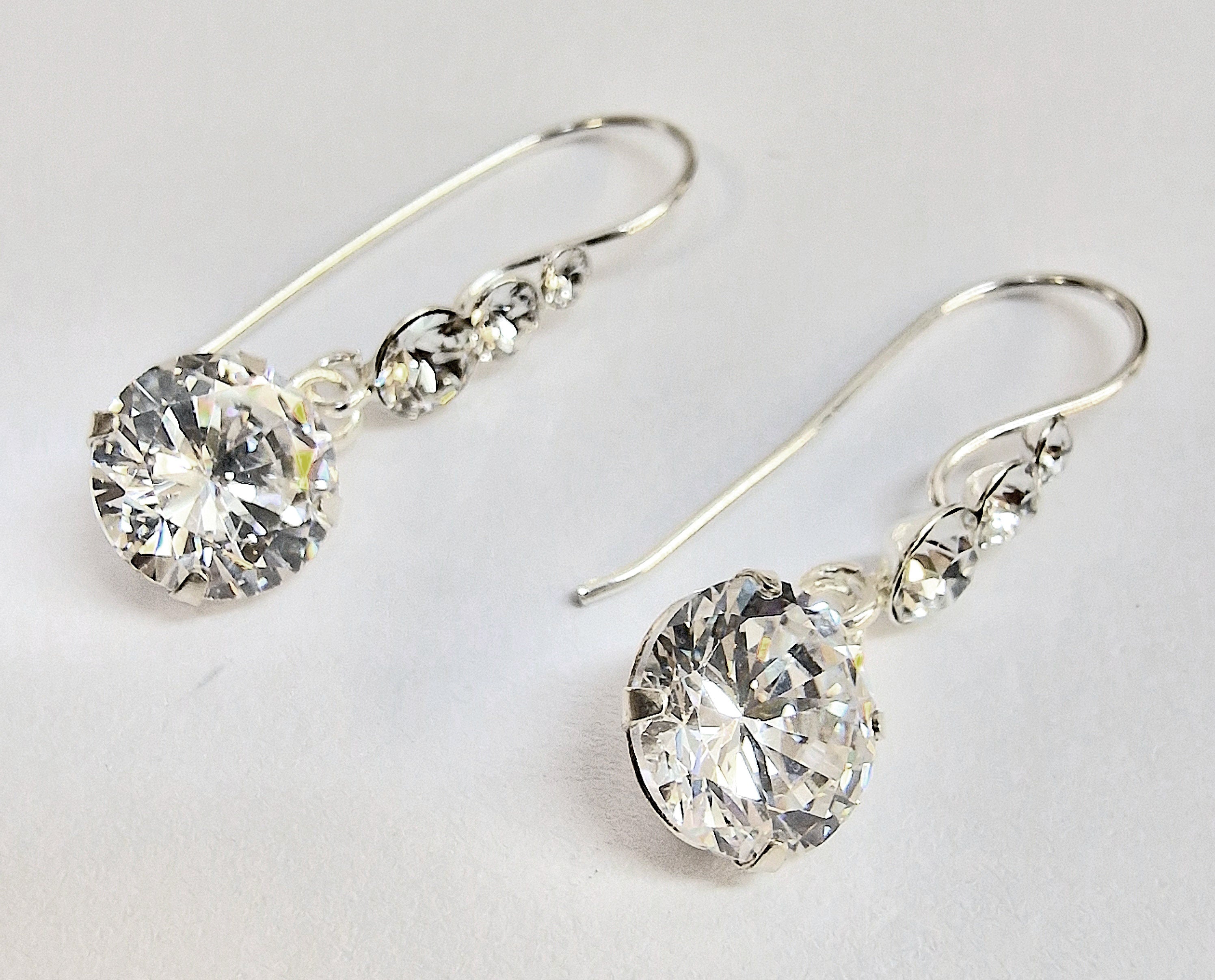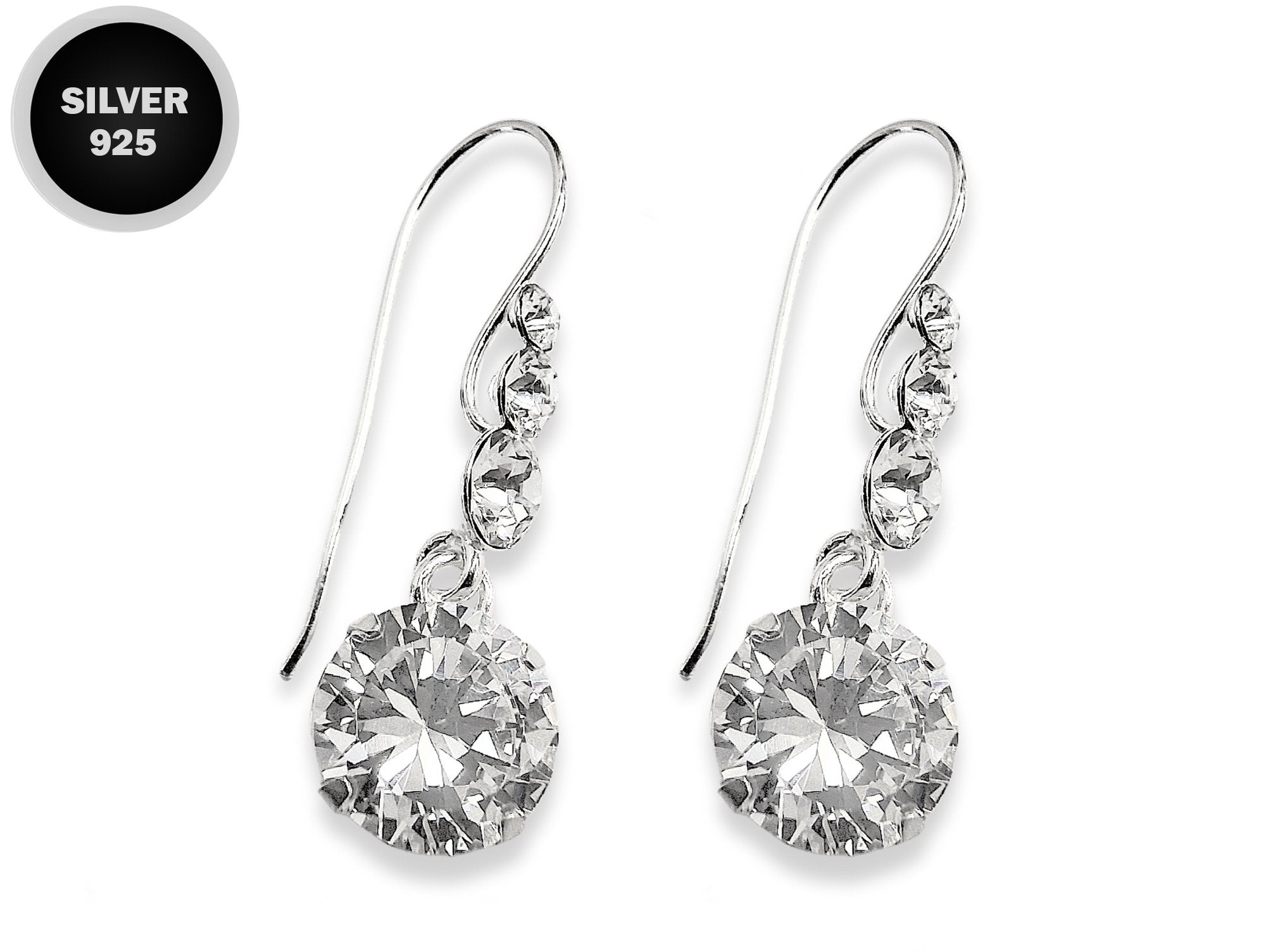 Silver Drop Dangle Beautiful Shiny CZ Crystal Earrings - This exquisite earring captivates with its timeless elegance.