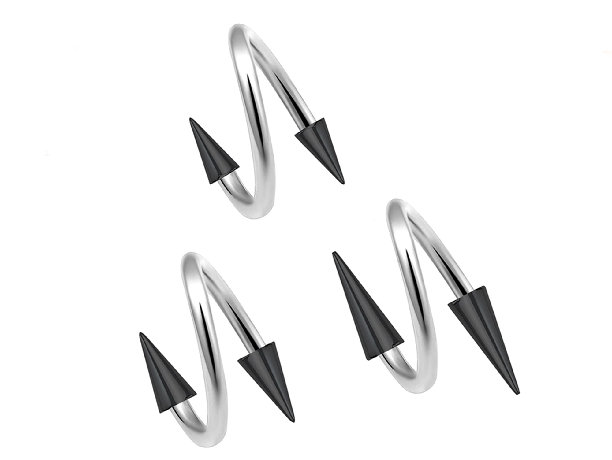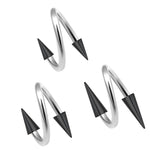 Spiral Helix Barbell, Twisted Bar with Colorful Top Spike Studs, Long Spike and Extra Long Spike Titanium 14G (1.6mm) Also for Lip Piercing