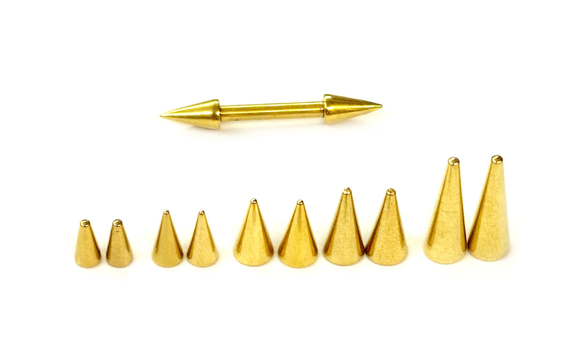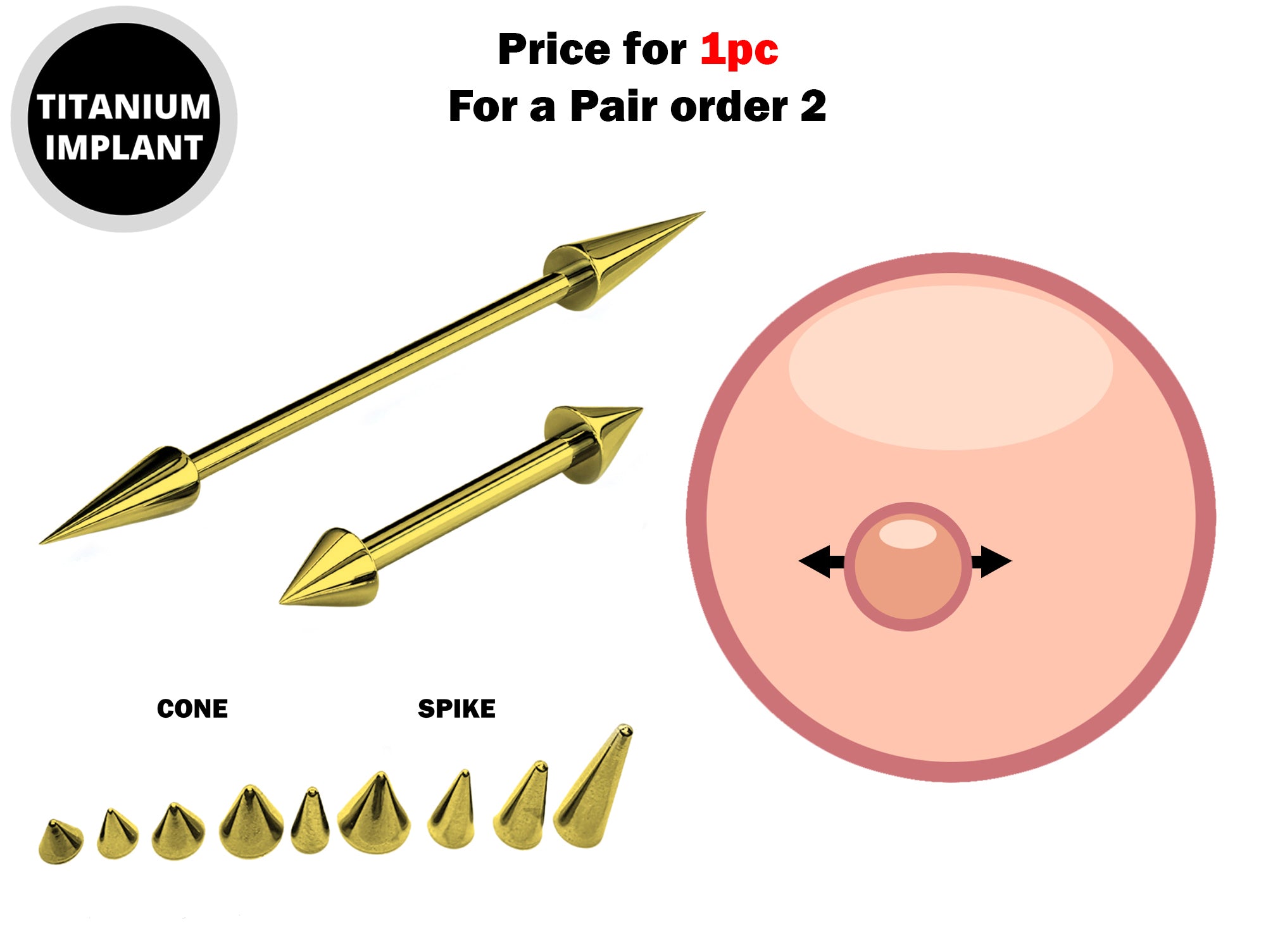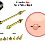 Titanium Gold Cone / Spike Nipple Barbell, Nipple Jewelry Studs 16g 14g Nipple Piercing - Straight Barbell Externally Threaded