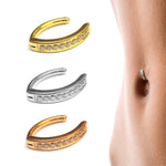 Titanium Reverse Clicker Belly Button Ring, Belly Bar with CZ Crystal Sets - 14G Belly Bar Size 10mm - Gold, Rose Gold, Silver Tone